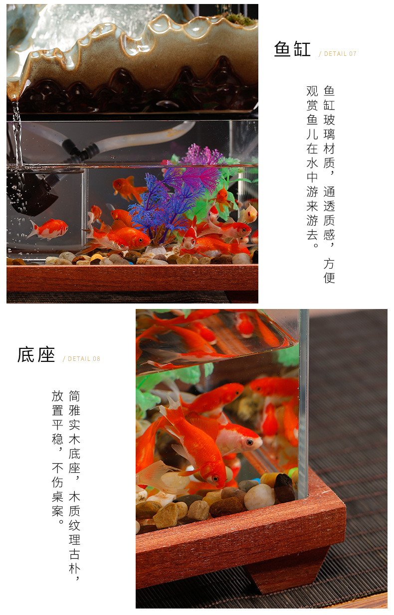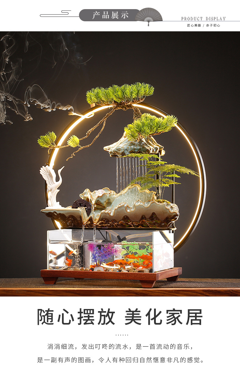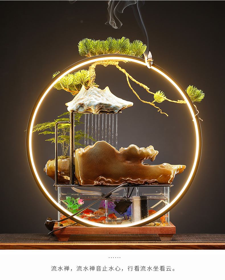 흐르는 물 장식품 유리 어항 럭키 거실 사무실 데스크탑 TV 캐비닛 출납원 장식 오프닝 선물