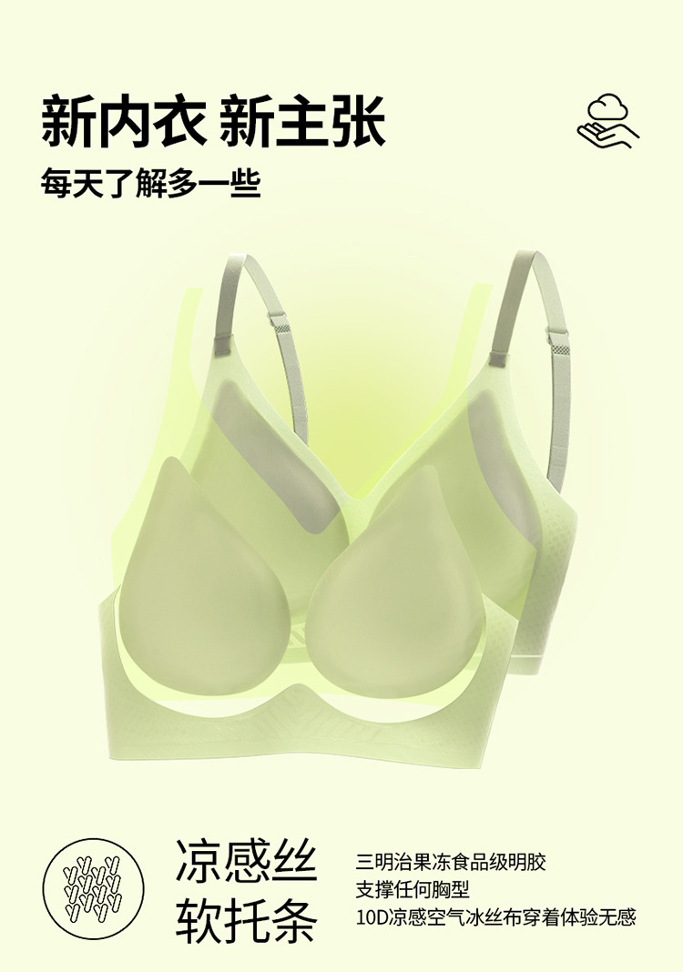 Chao 얇은 여성 여름 속옷 푸시 업 작은 유방 얼음 실크 젤리 접착제 반고정 컵 스포츠 원활한 브래지어스토어 가기