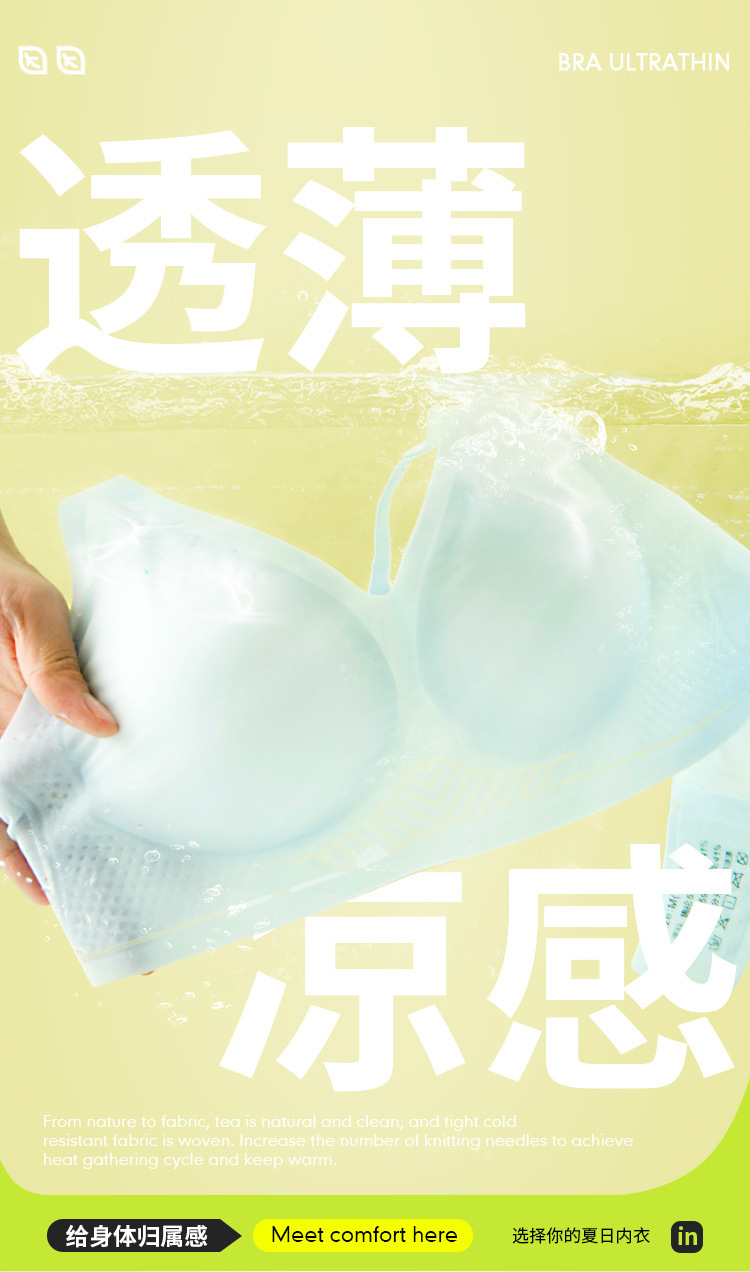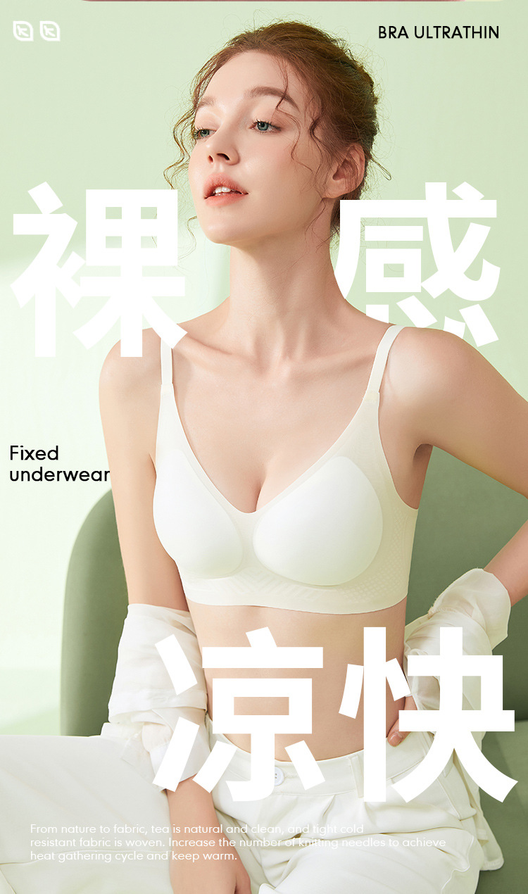 Chao 얇은 여성 여름 속옷 푸시 업 작은 유방 얼음 실크 젤리 접착제 반고정 컵 스포츠 원활한 브래지어