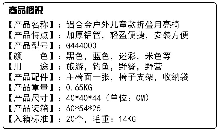 공장 도매 알루미늄 합금 어린이 의자 휴대용 가벼운 야외 캠핑 접이식 어린이 달 의자 접이식 의자