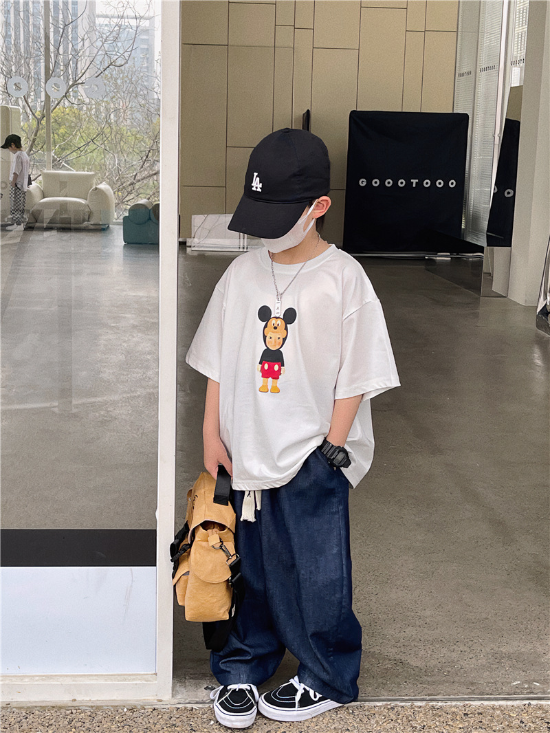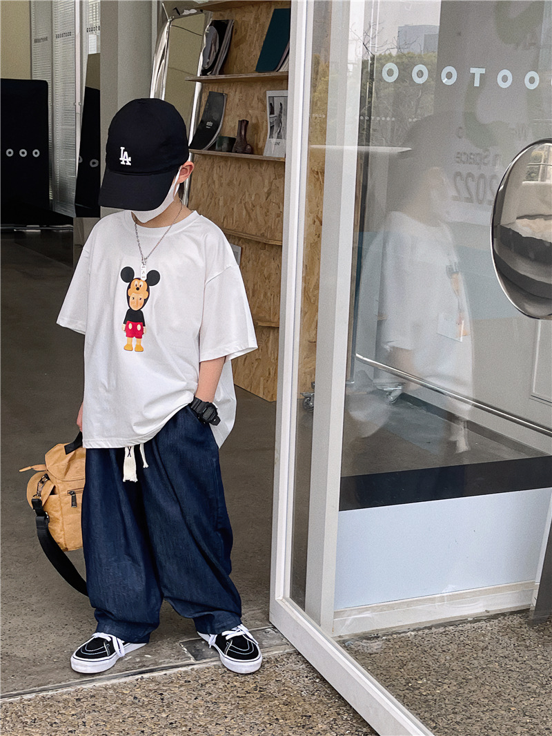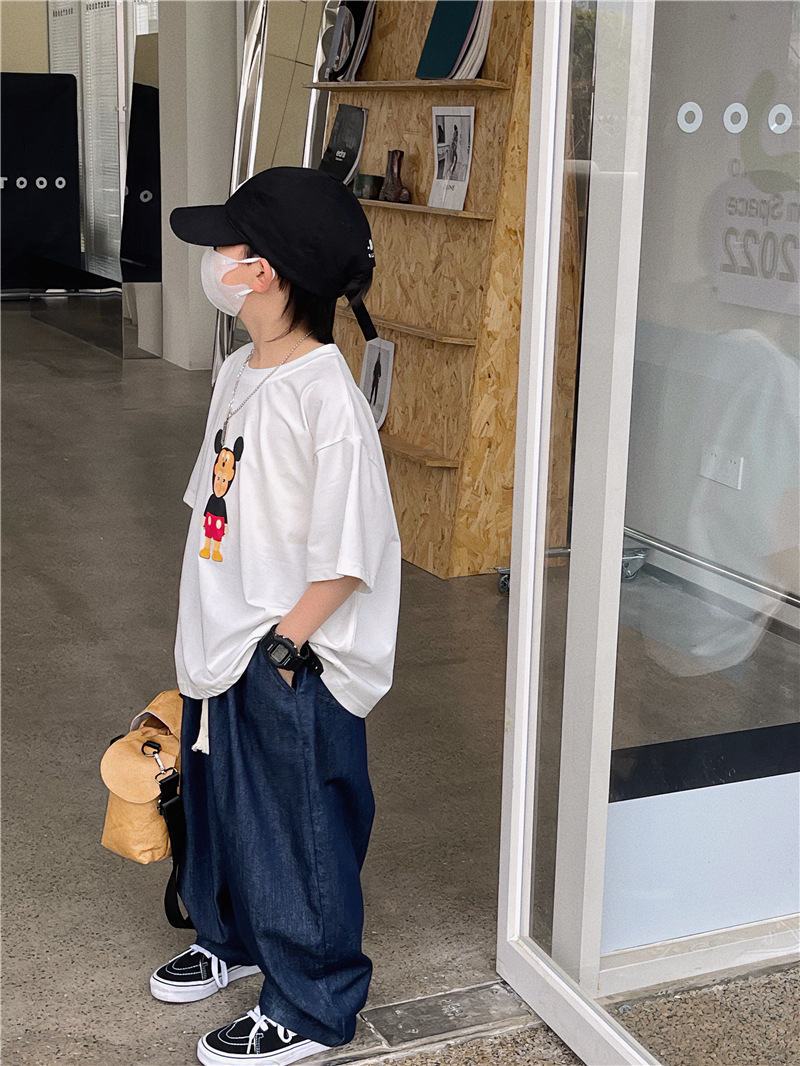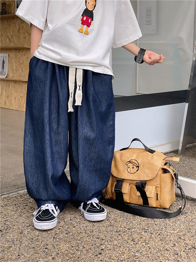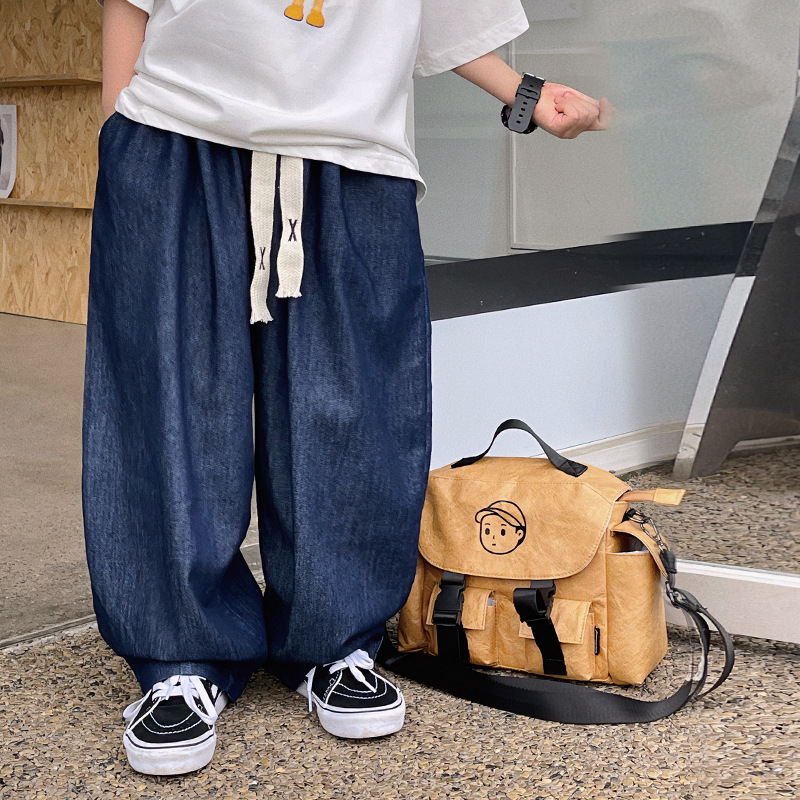 Baoduo 아동복 아동 청바지 2023 여름 새 아기 모기 방지 바지 대형 어린이 단색 바지 한국 스타일 유행스토어 가기