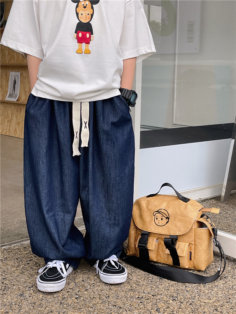 Baoduo 아동복 아동 청바지 2023 여름 새 아기 모기 방지 바지 대형 어린이 단색 바지 한국 스타일 유행