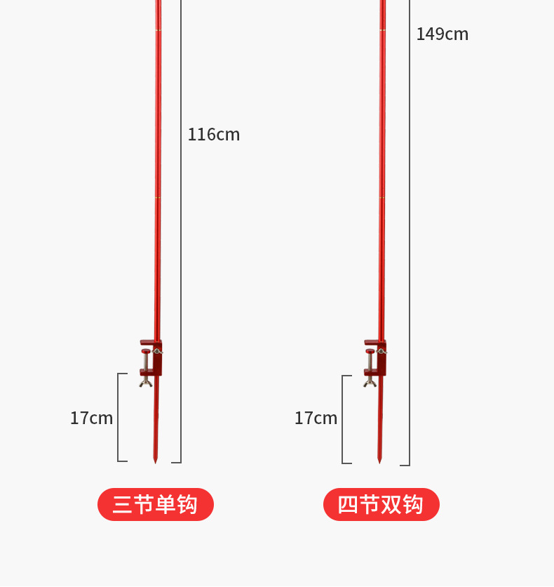 • 레드 4 섹션 더블 후크 램프 스탠드