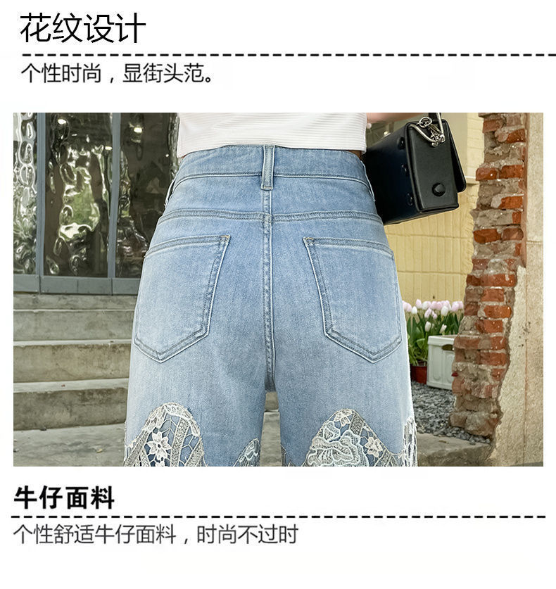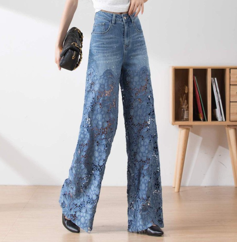 디자인 감각 레이스 스티칭 틈새 청바지 여성의 2023 여름 새로운 스트레이트 슬리밍 복고풍 스타일 캐주얼 바지스토어 가기