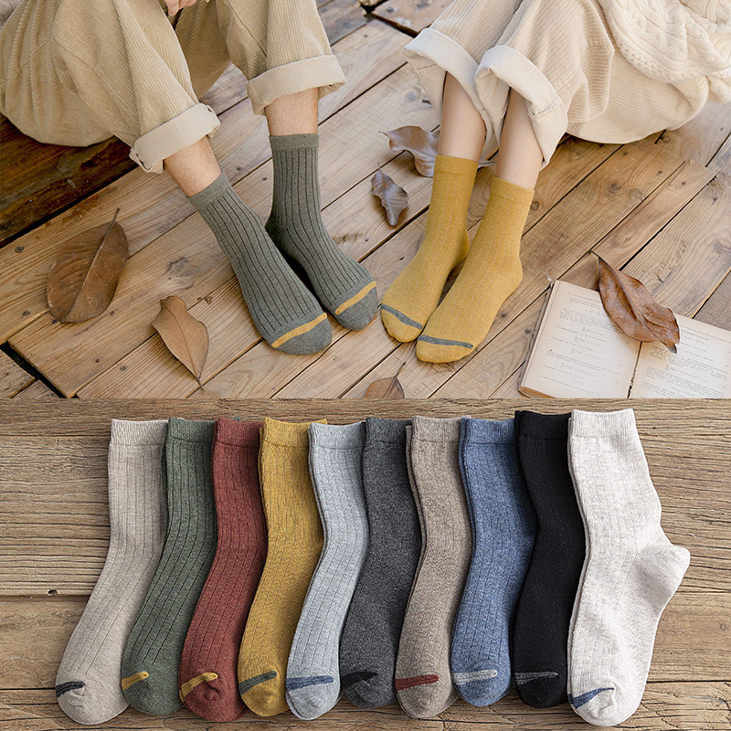 튜브 순면 양말 어린이 2023 년 뉴 레트로 솔리드 컬러 세로 바 커플 스포츠 양말 공장 직접 도매스토어 가기