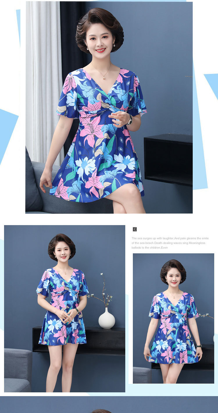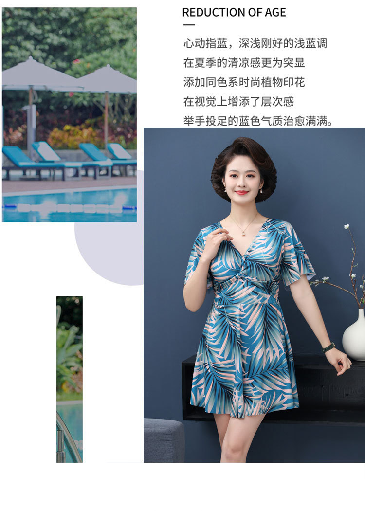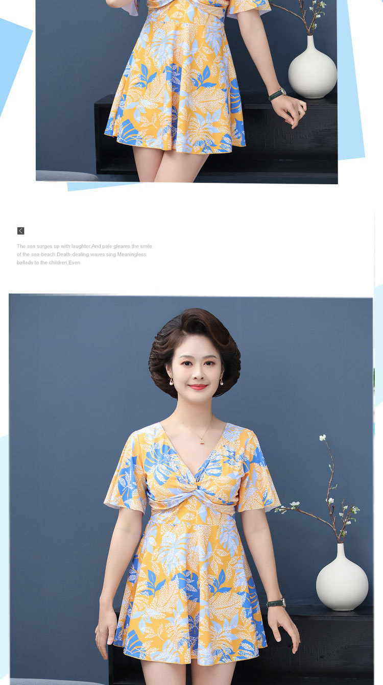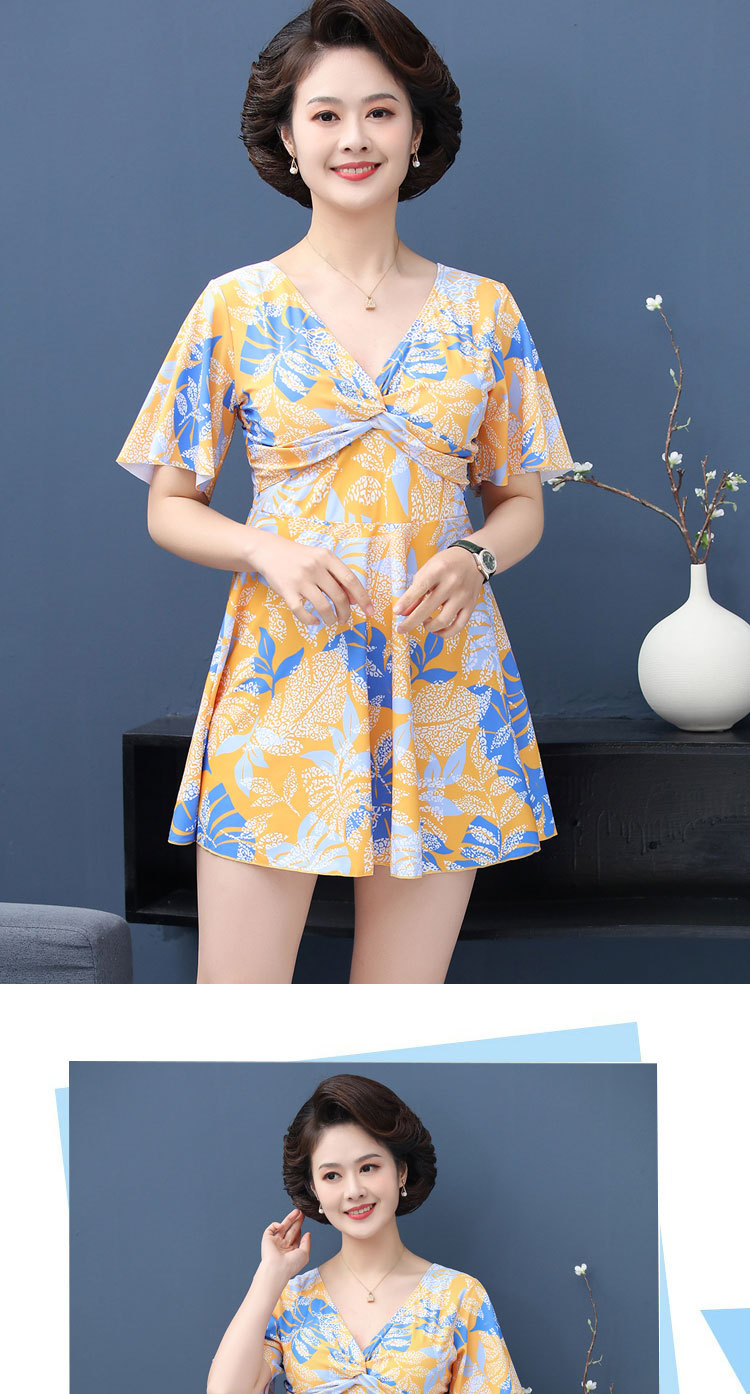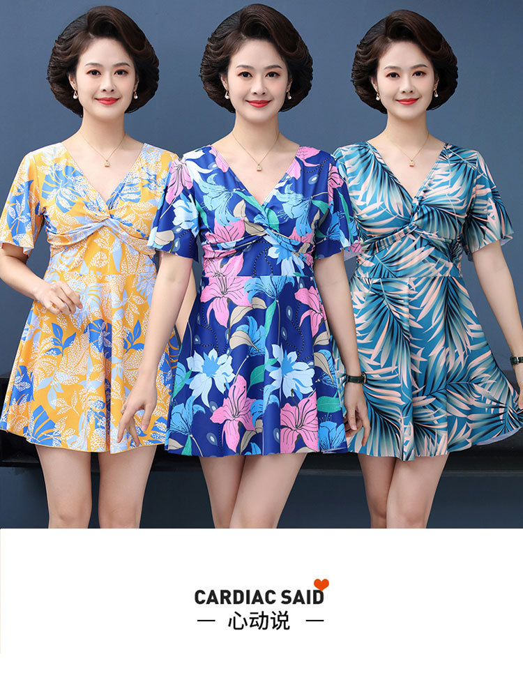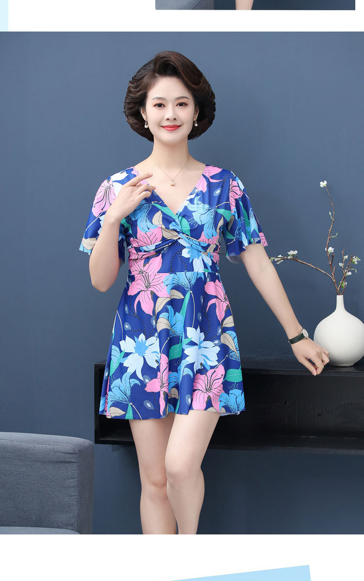 수영복 숙녀 플러스 사이즈 중년 어머니 분할 보수적 인 패션 인쇄 배꼽 슬림 수영복 제조 업체 도매스토어 가기