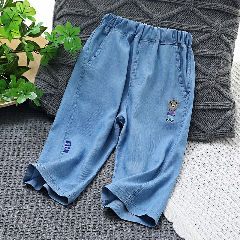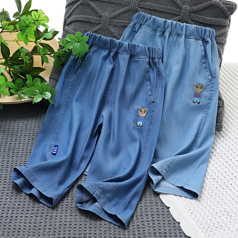 어린이 바지 여름 새로운 소년과 소녀 겉옷 크롭 바지 얇은 아기 텐셀 데님 반바지 유행스토어 가기