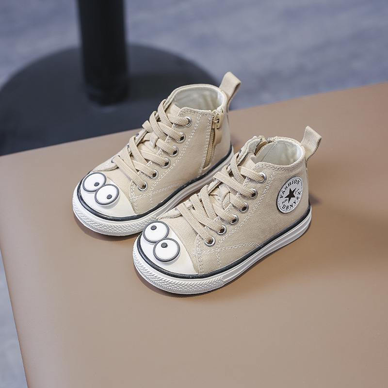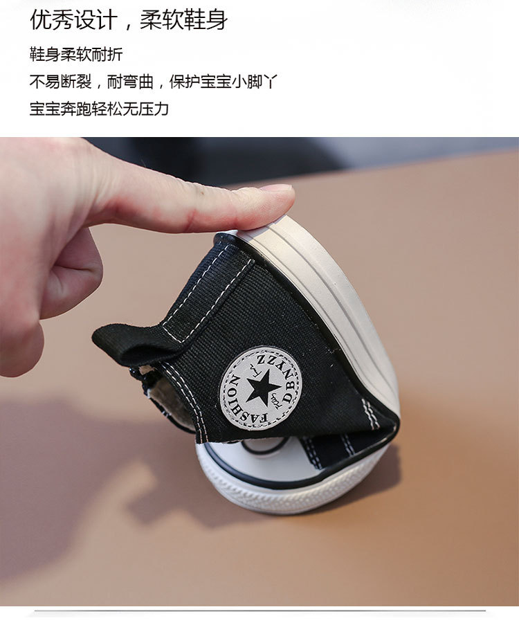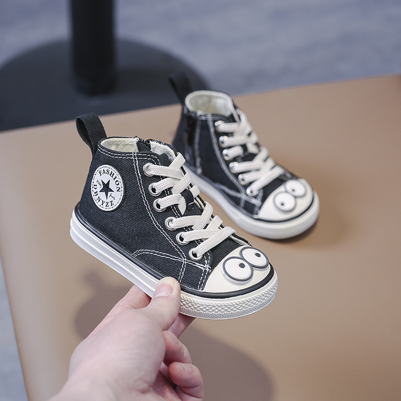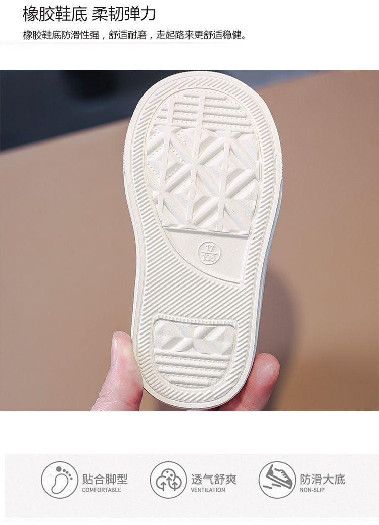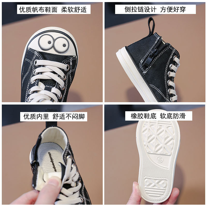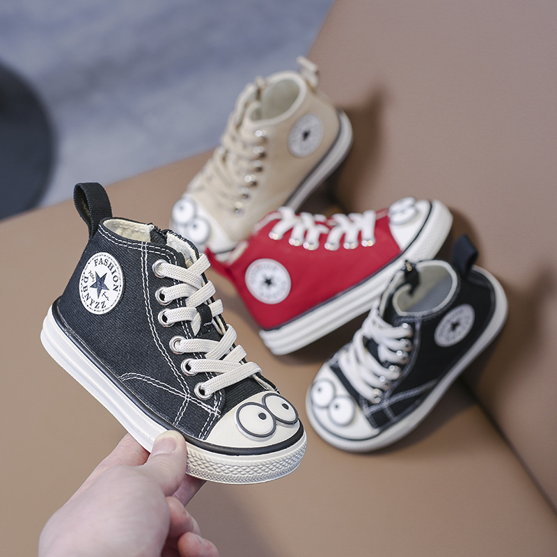어린이 캔버스 신발 2023 소년과 소녀를위한 하이탑 편안한 아기 신발 한국 중순 봄 새로운 스타일 중소 어린이를위한 작은 흰색 신발