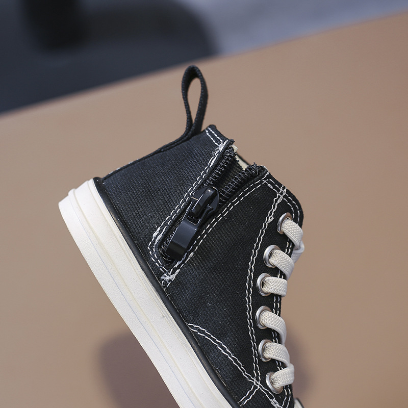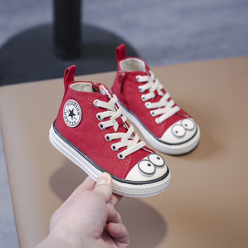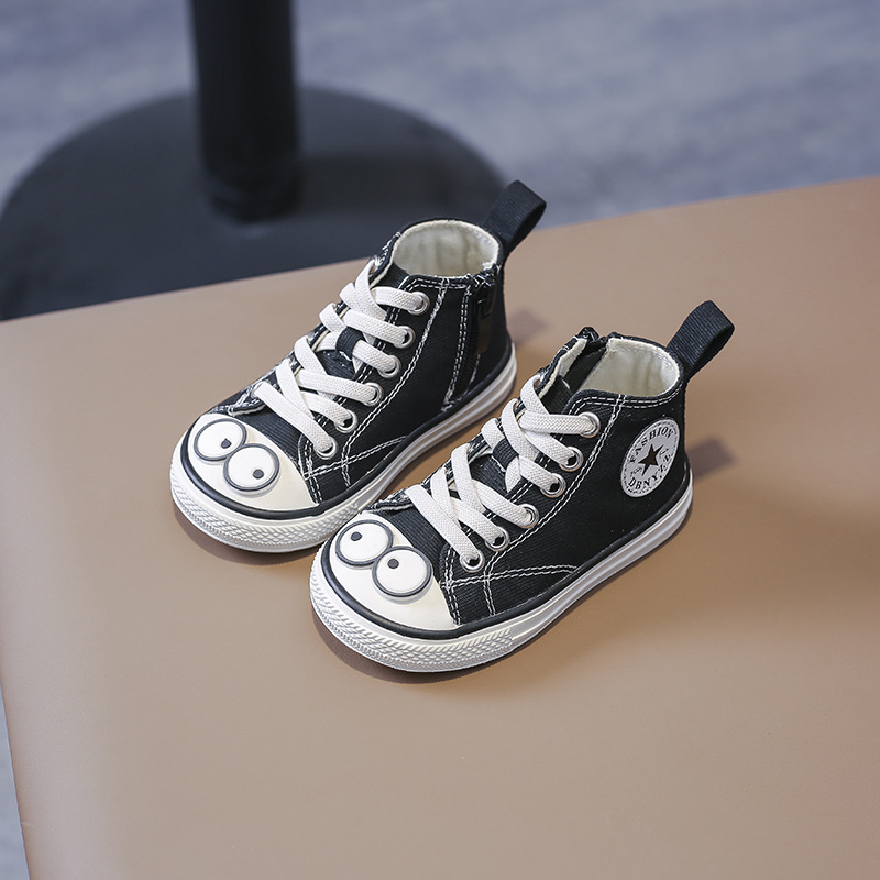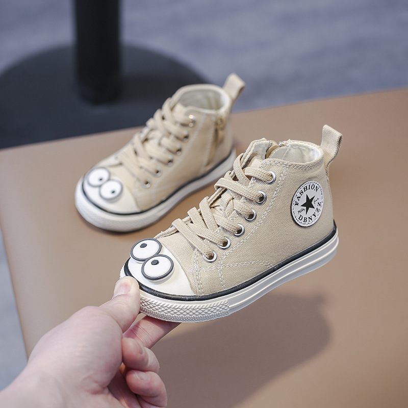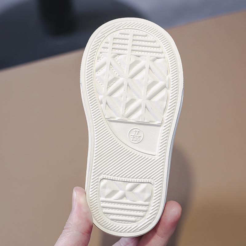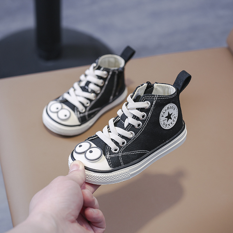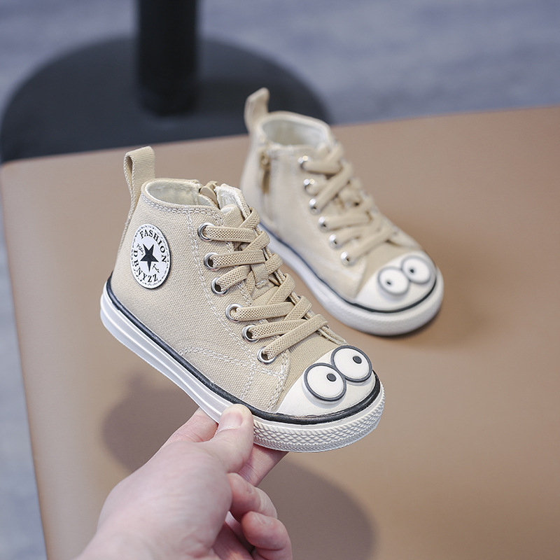 어린이 캔버스 신발 2023 소년과 소녀를위한 하이탑 편안한 아기 신발 한국 중순 봄 새로운 스타일 중소 어린이를위한 작은 흰색 신발
