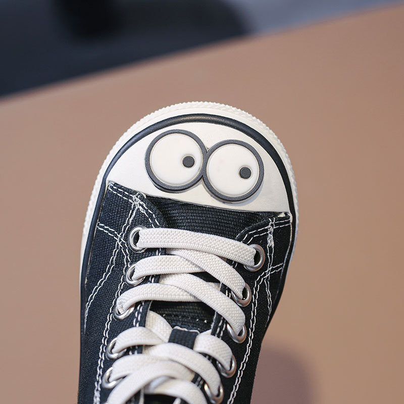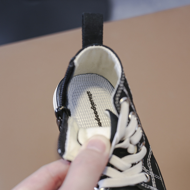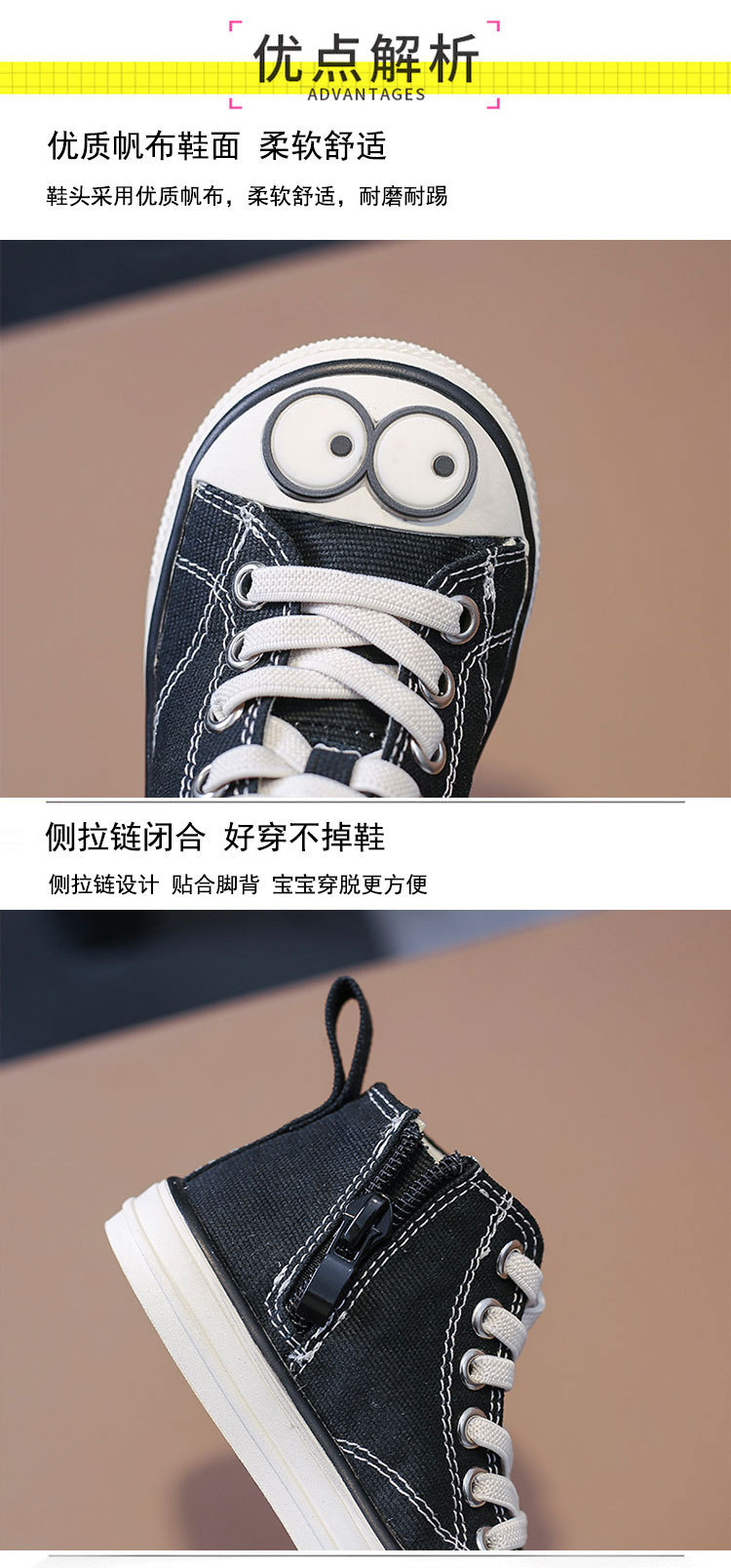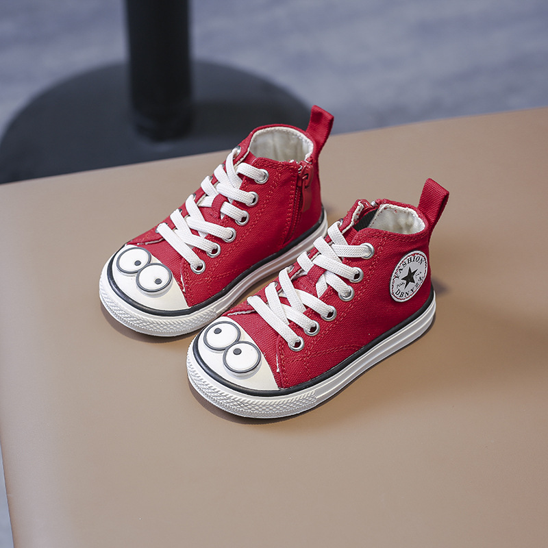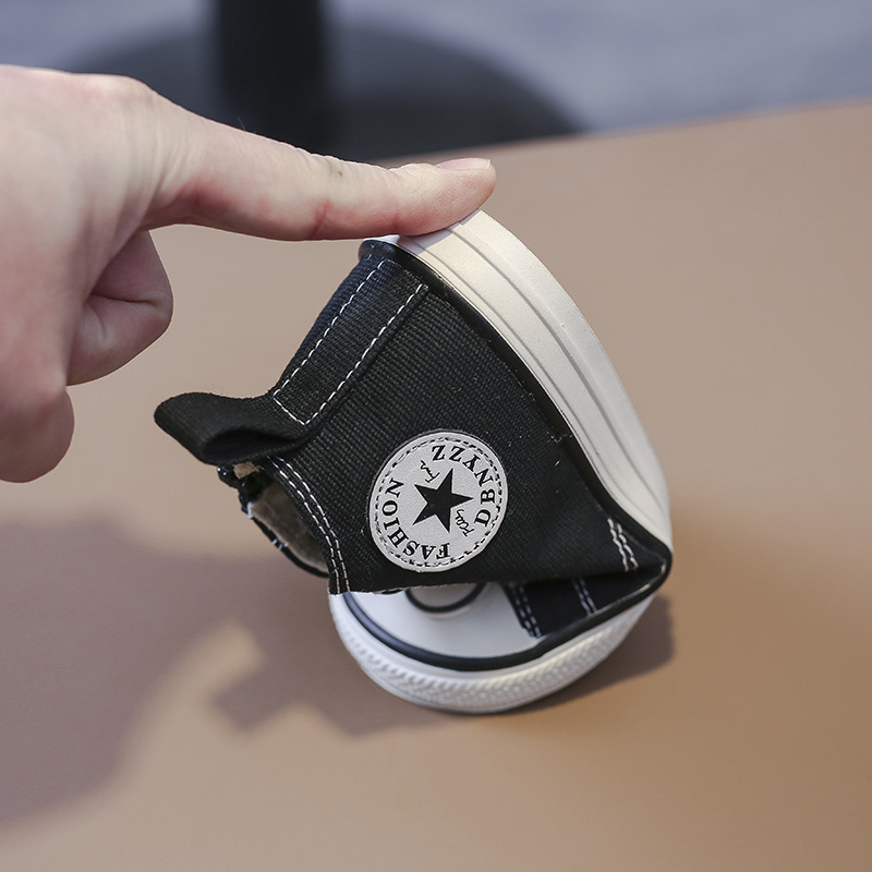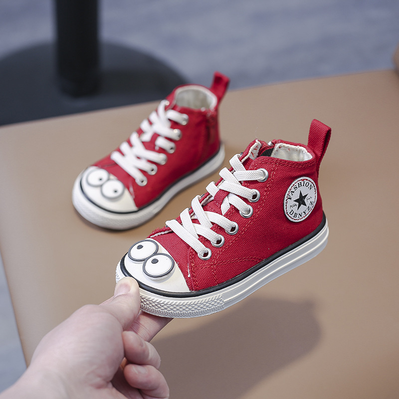 어린이 캔버스 신발 2023 소년과 소녀를위한 하이탑 편안한 아기 신발 한국 중순 봄 새로운 스타일 중소 어린이를위한 작은 흰색 신발