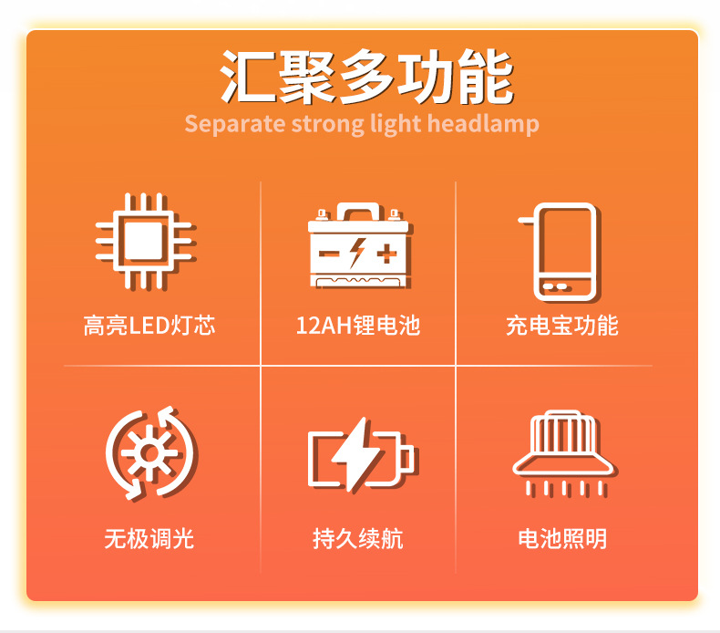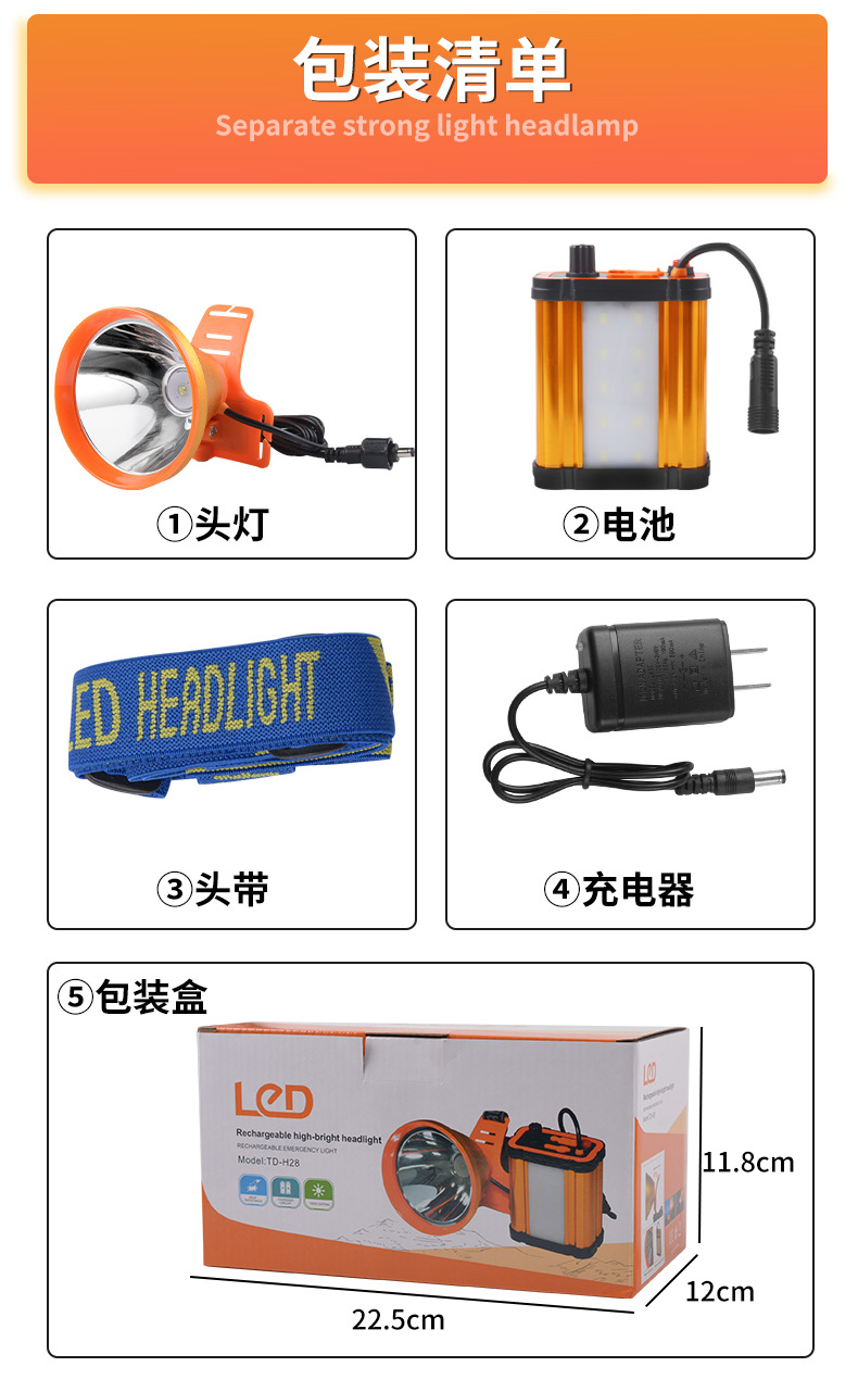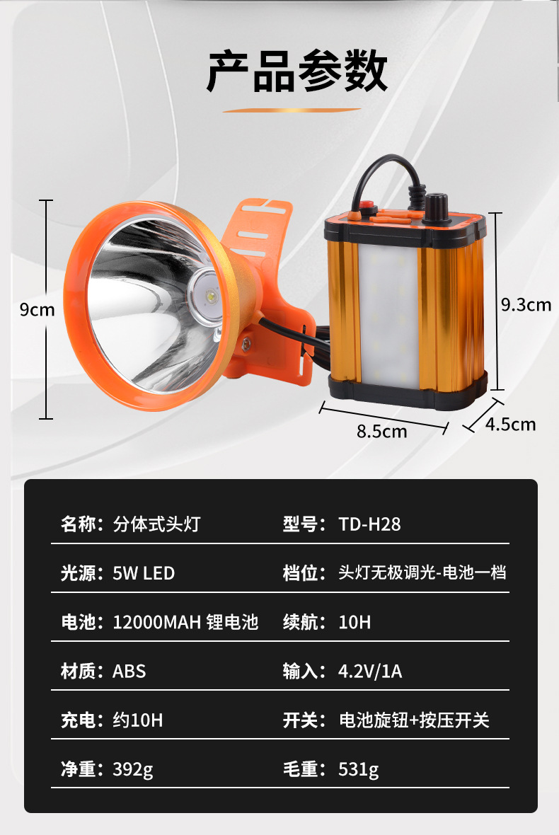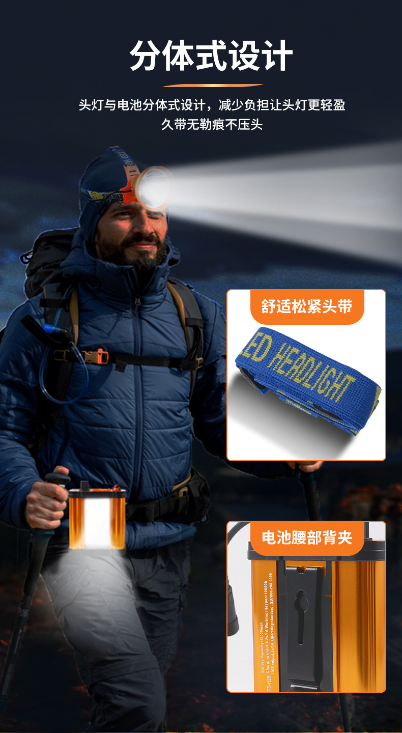 분리형 헤드라이트 리튬 배터리 LED 충전식 강력 초고휘도 낚시등 허리 장착 방수 광부등 초장시간 사용 가능
