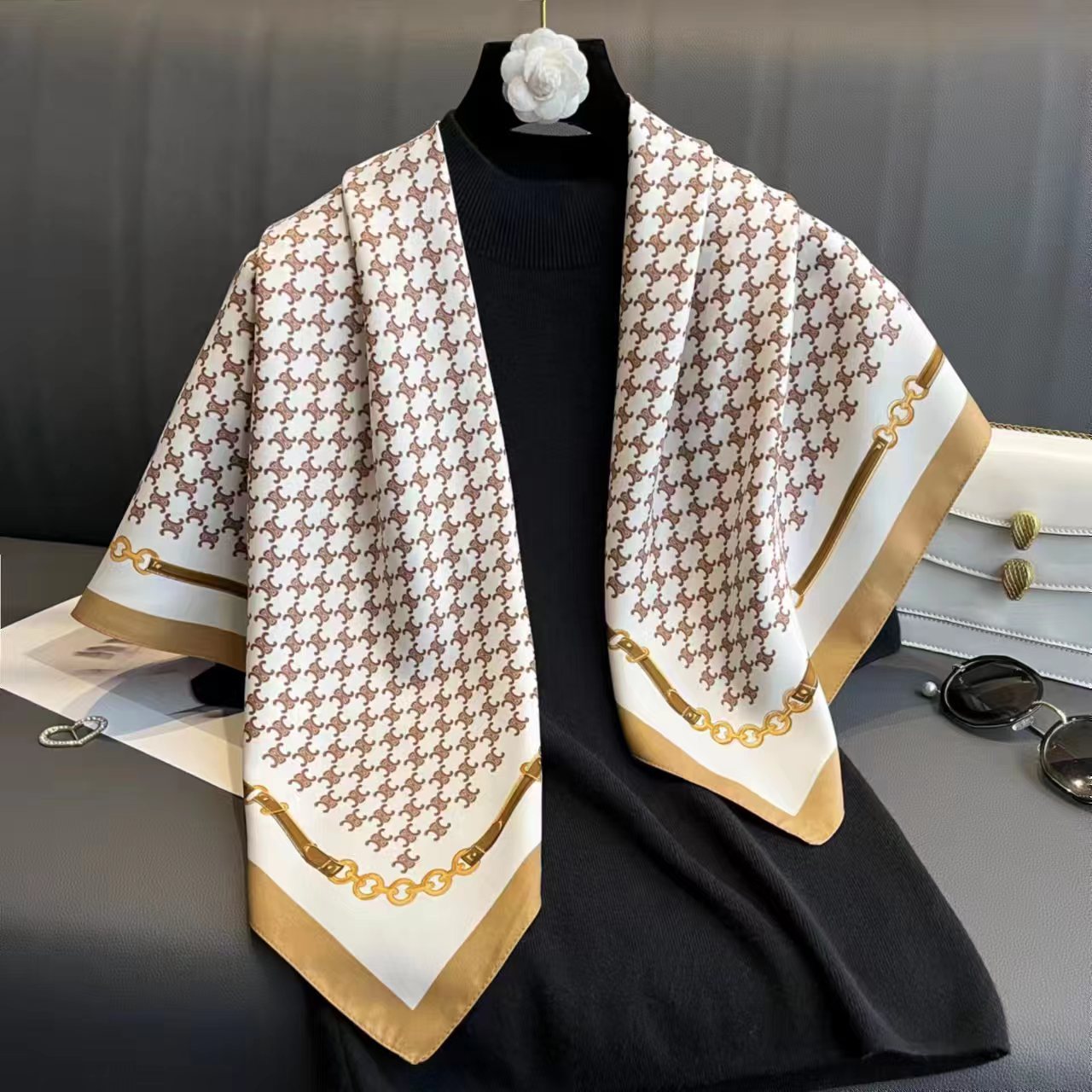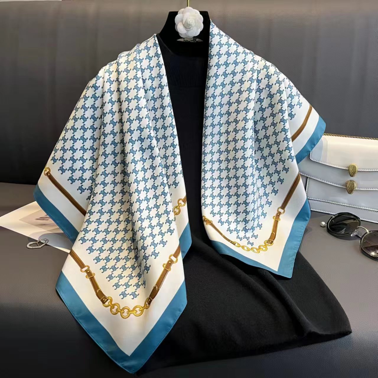 봄 프랑스 복고풍 모조 실크 스퀘어 능 직물 실크 90*90 스퀘어 스카프 여성 스카프 선 스크린 숄 도매스토어 가기