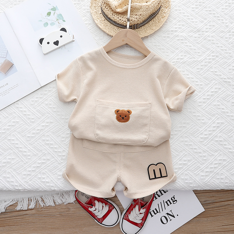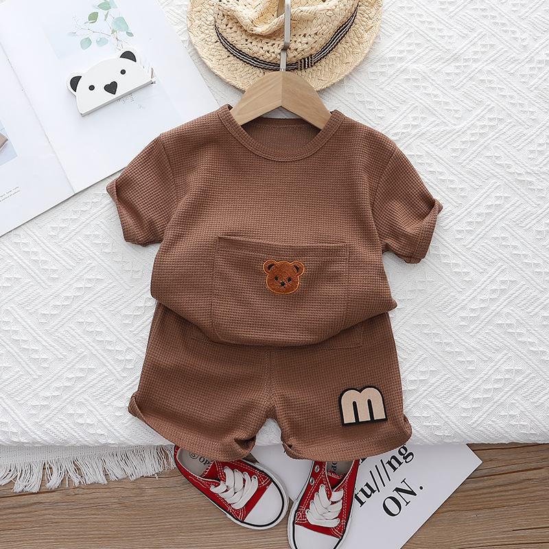 2024년 신상 남아 여름 반팔 정장 세트, 남자 아기 옷, 트렌디하고 멋진 아동복 투피스 세트