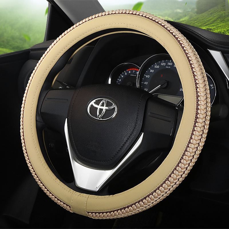 여름 아이스 실크 핸들 커버 사계절 유니버설 미끄럼 방지 통기성 땀 흡수 남성 및 여성 자동차 핸들 커버 핸들 가죽 커버 좋은 느낌스토어 가기