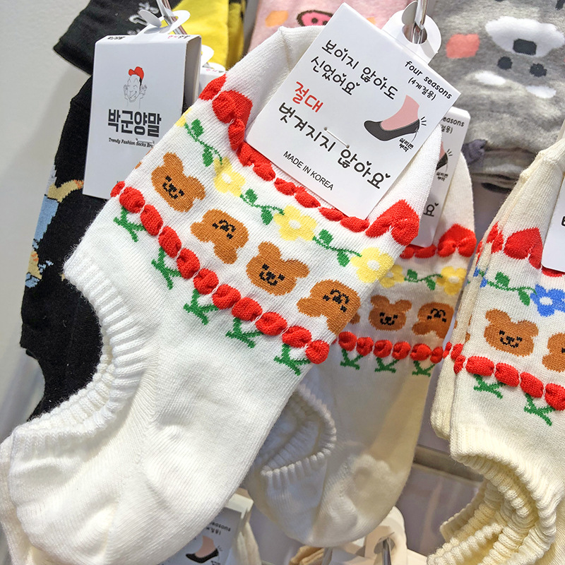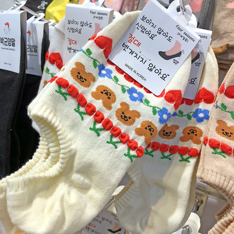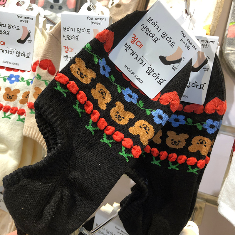 한국 수입 보트 양말 귀여운 만화 곰 사랑 여자의 안티 스트립 양말 봄과 여름 얇은 면 체리 여자의 짧은 양말스토어 가기