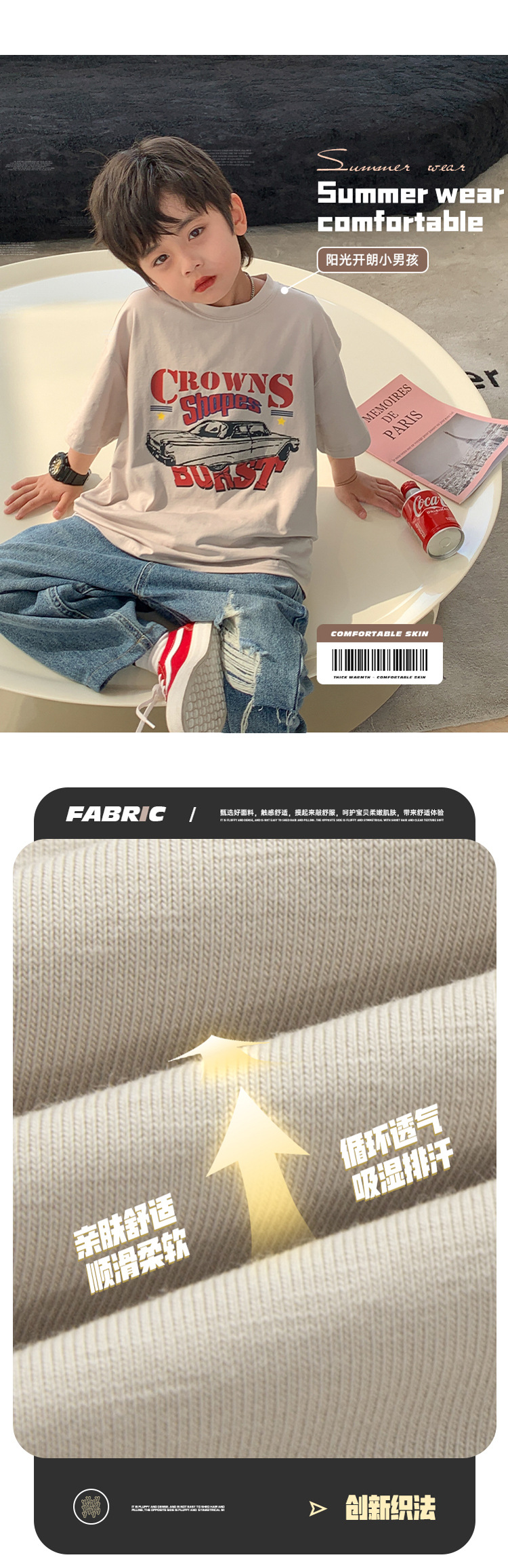 男童短袖t恤2024新款儿童夏装潮酷印花体恤韩版帅气男孩半袖上衣