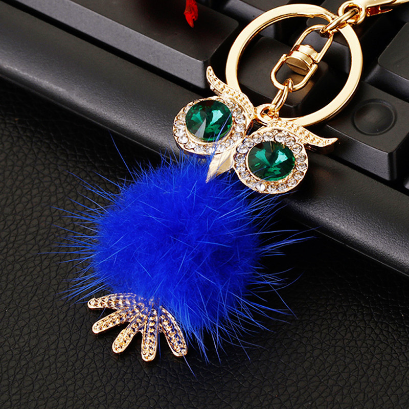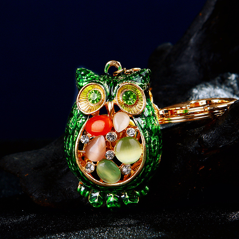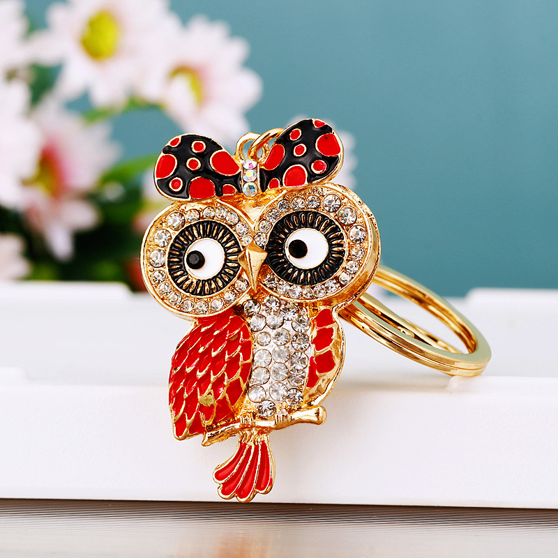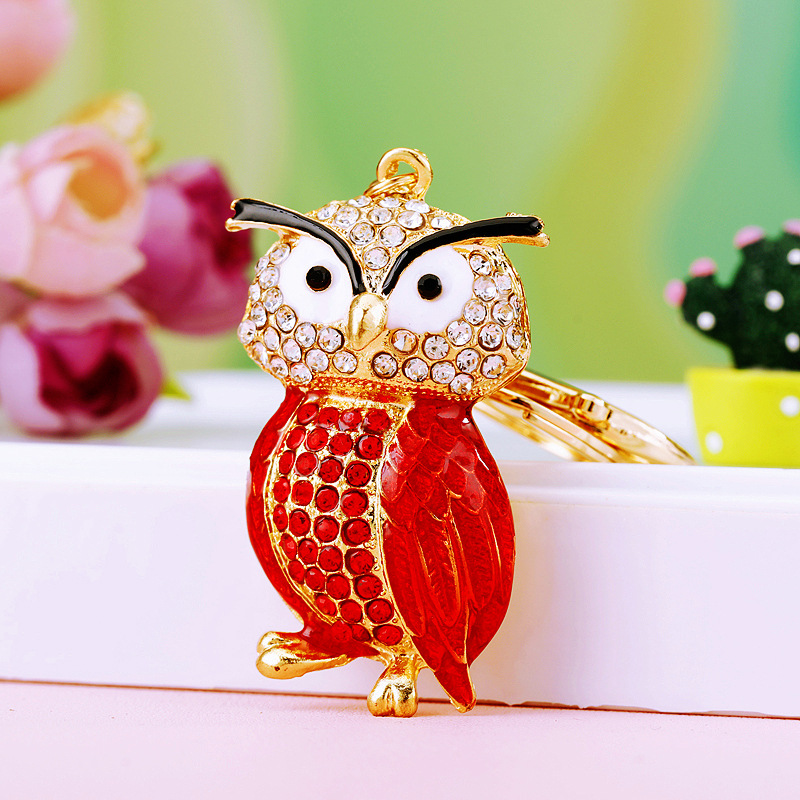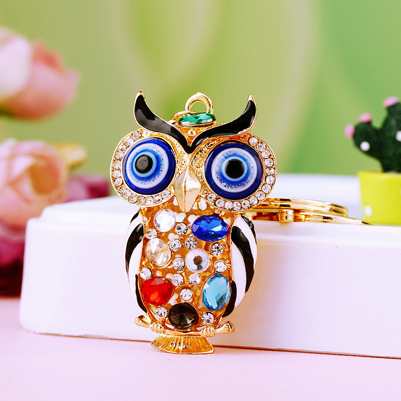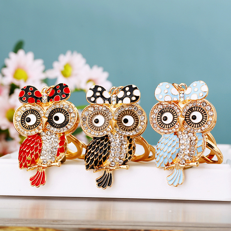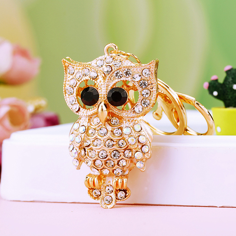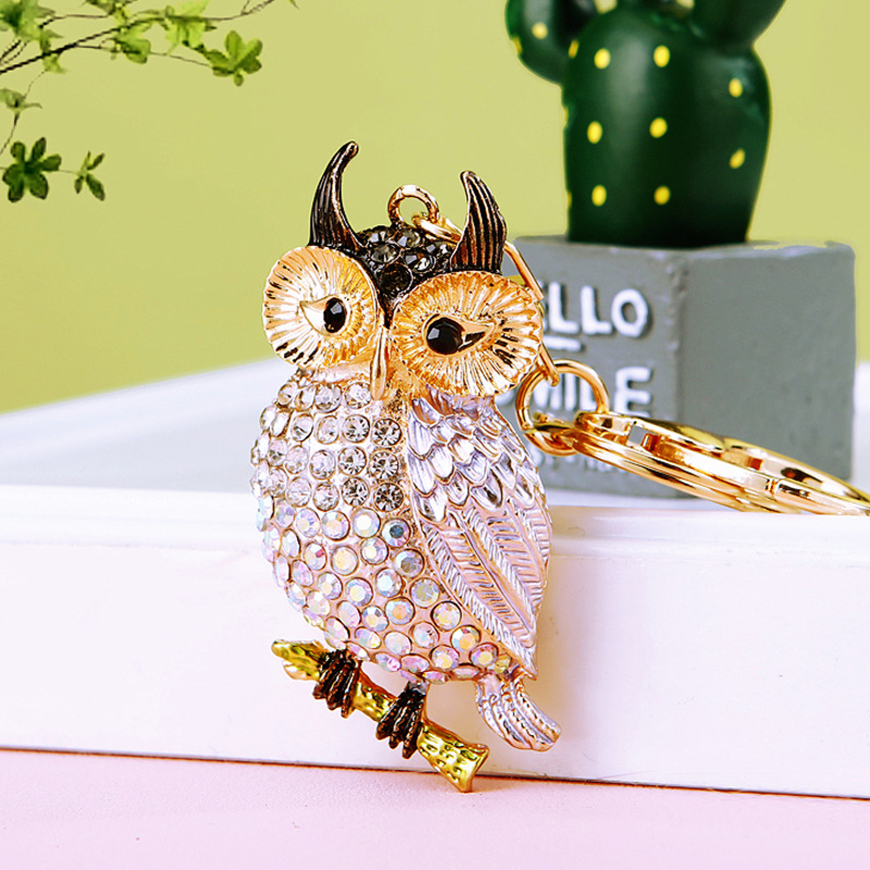 다이아몬드 박힌 유럽과 미국 올빼미 자동차 열쇠 고리 여성용 귀여운 가방 펜던트 금속 열쇠 고리 크로스 보더 크리에이티브 선물스토어 가기