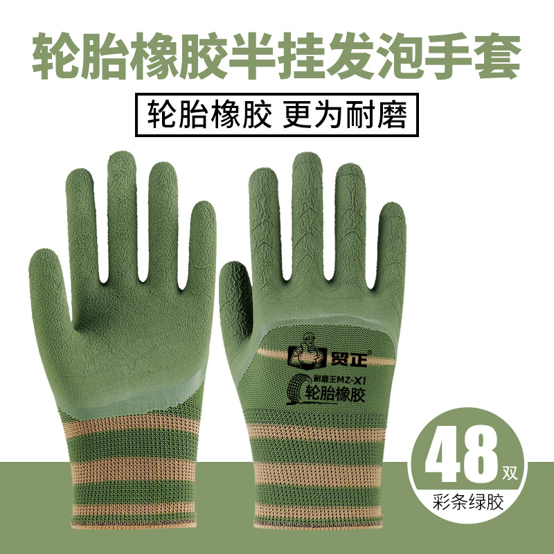 타이어 고무 발포 장갑, 두꺼운 내마모성 미끄럼 방지 라텍스 함침 장갑, 철근 작업자 보호 장갑, 산업용 내마모성 장갑