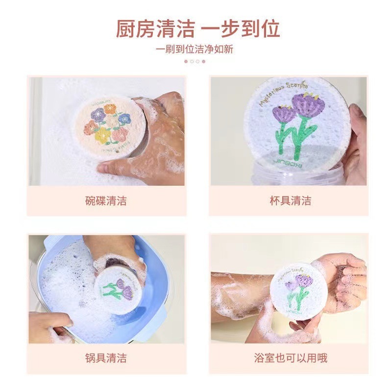 라운드 꽃 나무 펄프 면 스폰지 닦아 압축 흡수 우드 패들 스폰지 브러쉬 냄비 제조 업체 주방 걸레 접시 세척 유물스토어 가기