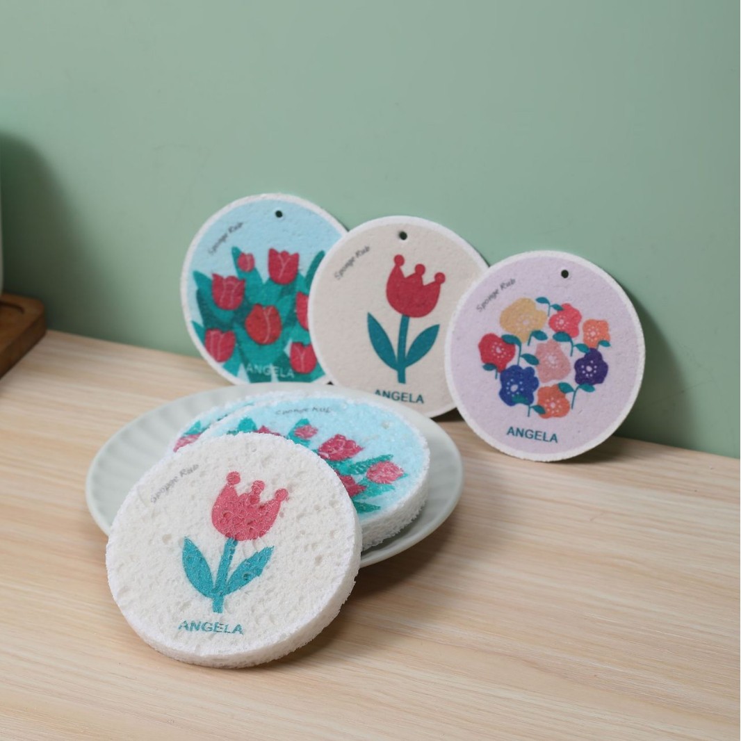 라운드 꽃 나무 펄프 면 스폰지 닦아 압축 흡수 우드 패들 스폰지 브러쉬 냄비 제조 업체 주방 걸레 접시 세척 유물
