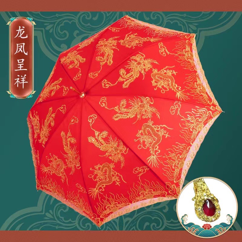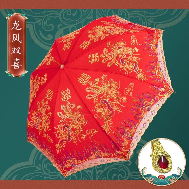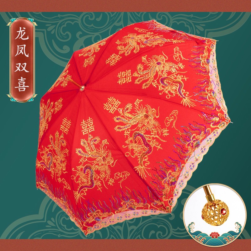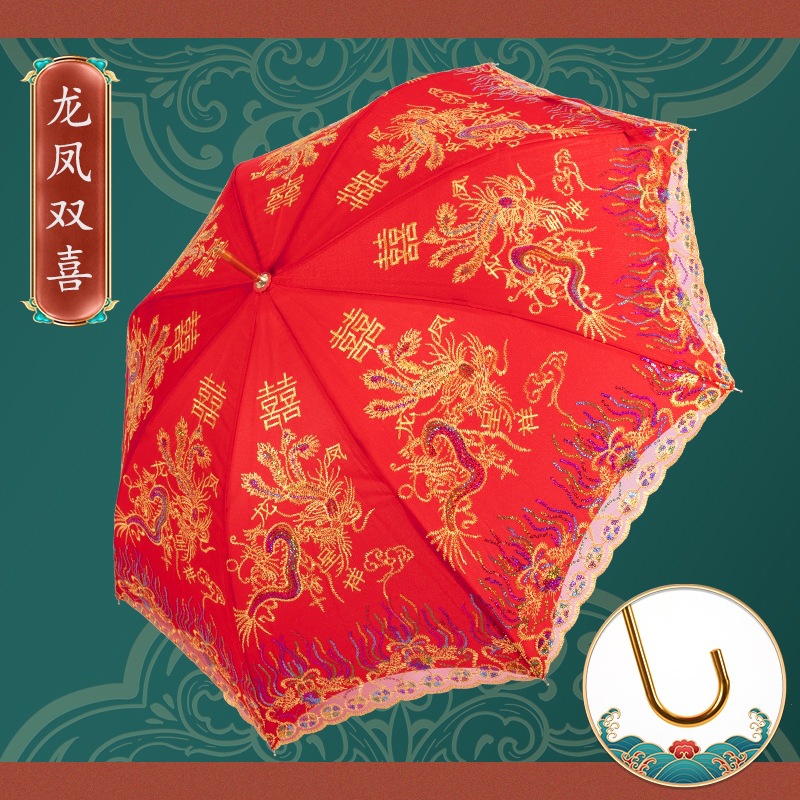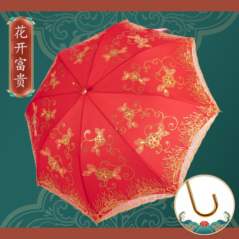 빨간 우산 웨딩 웨딩 우산 레이스 자수 중국 스타일 웨딩 긴 손잡이 우산 빈티지 웨딩 우산 신부 우산