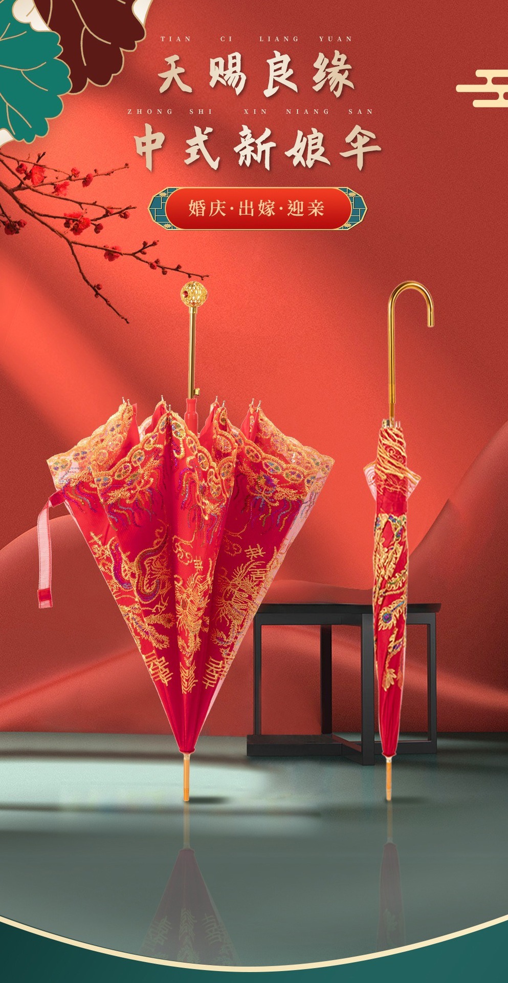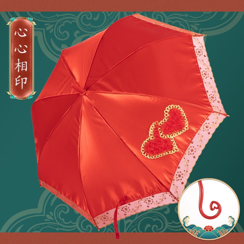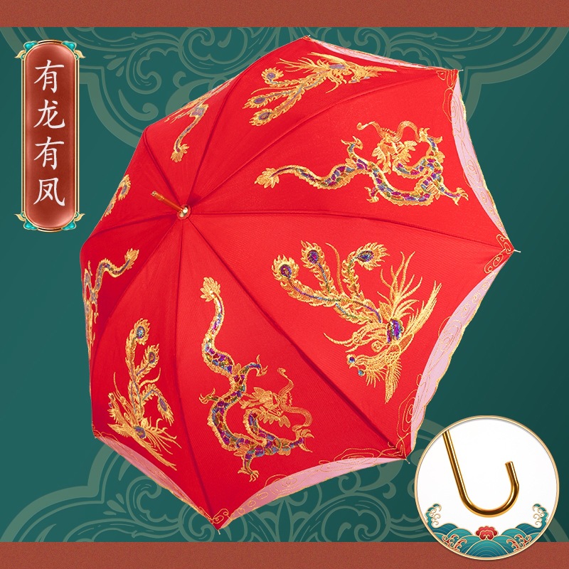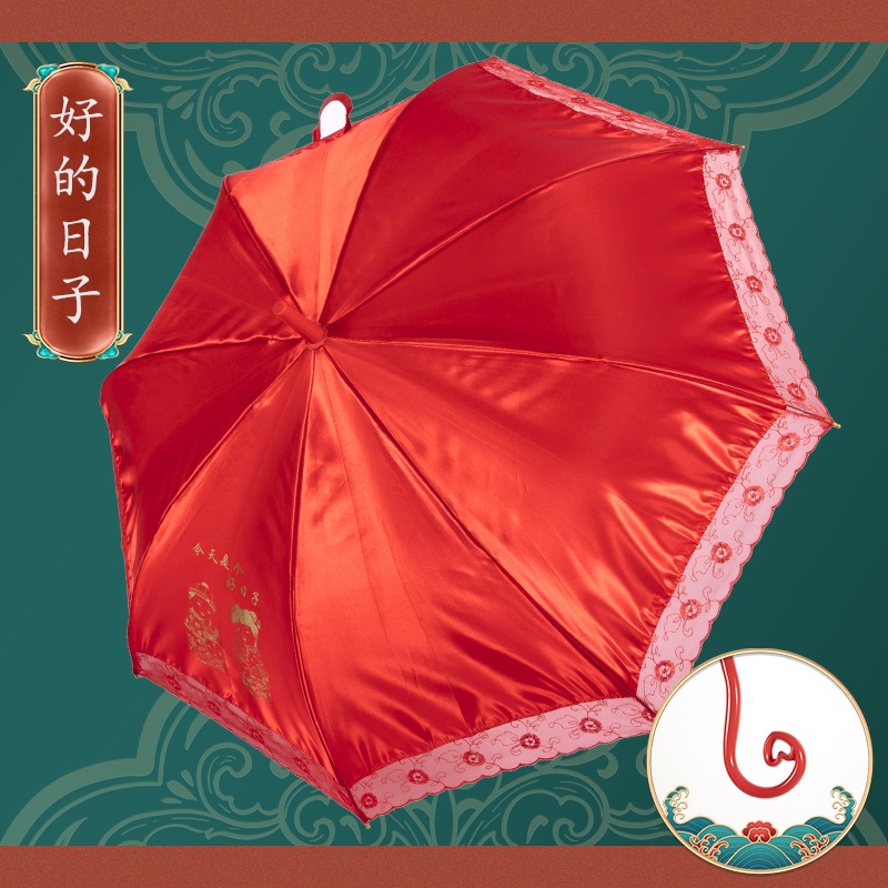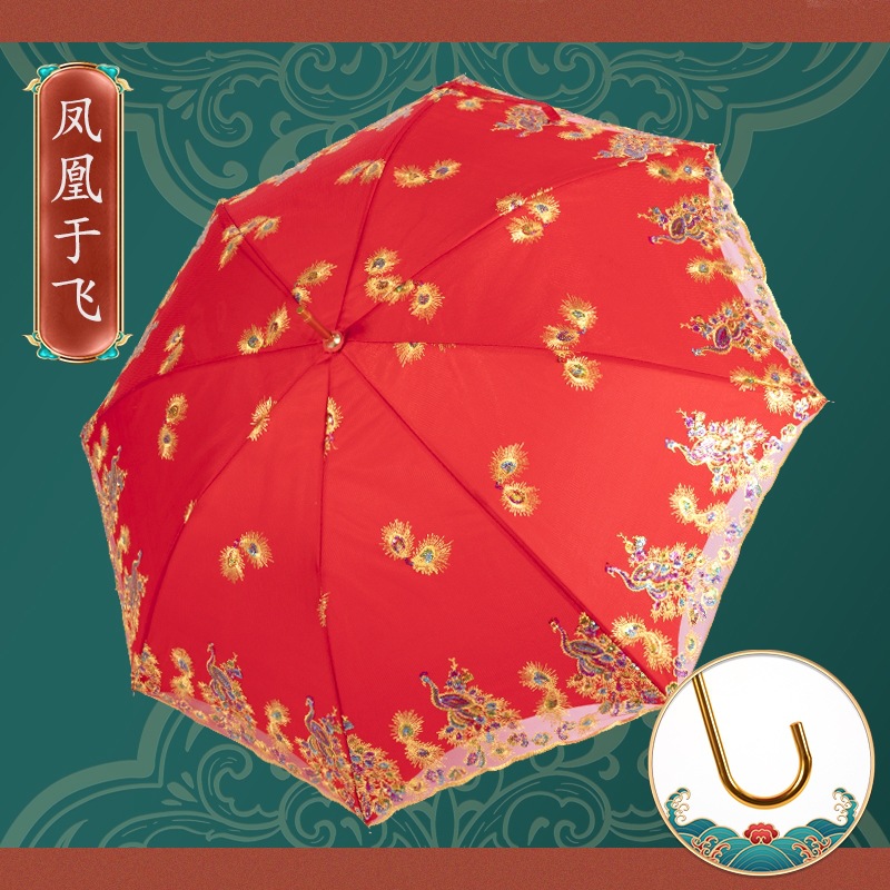빨간 우산 웨딩 웨딩 우산 레이스 자수 중국 스타일 웨딩 긴 손잡이 우산 빈티지 웨딩 우산 신부 우산