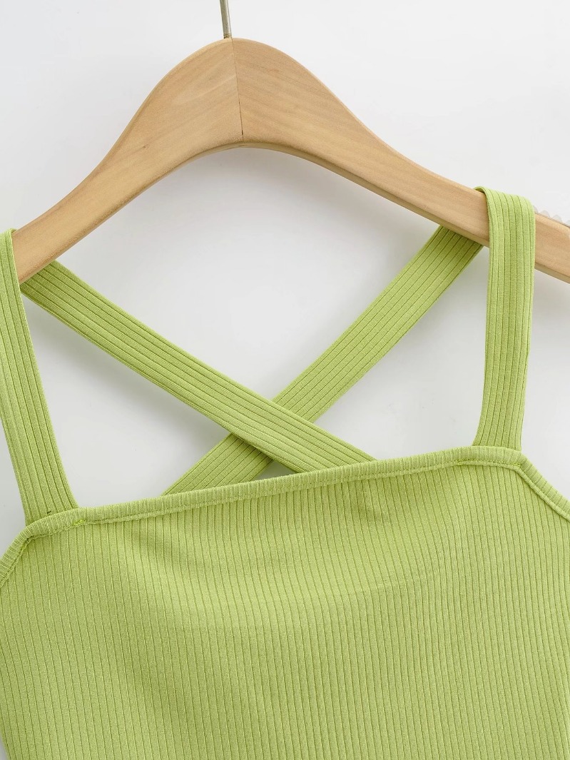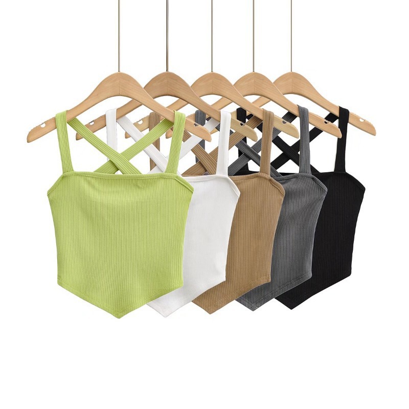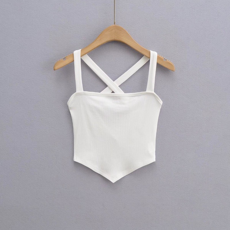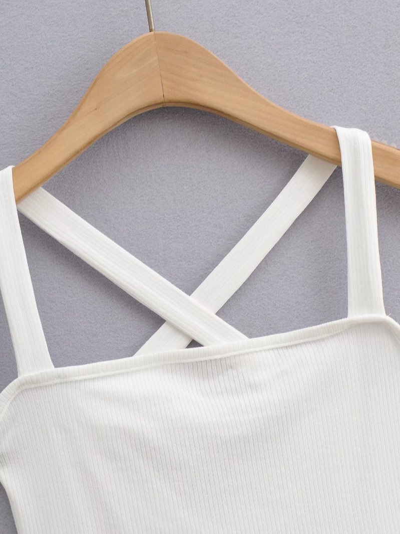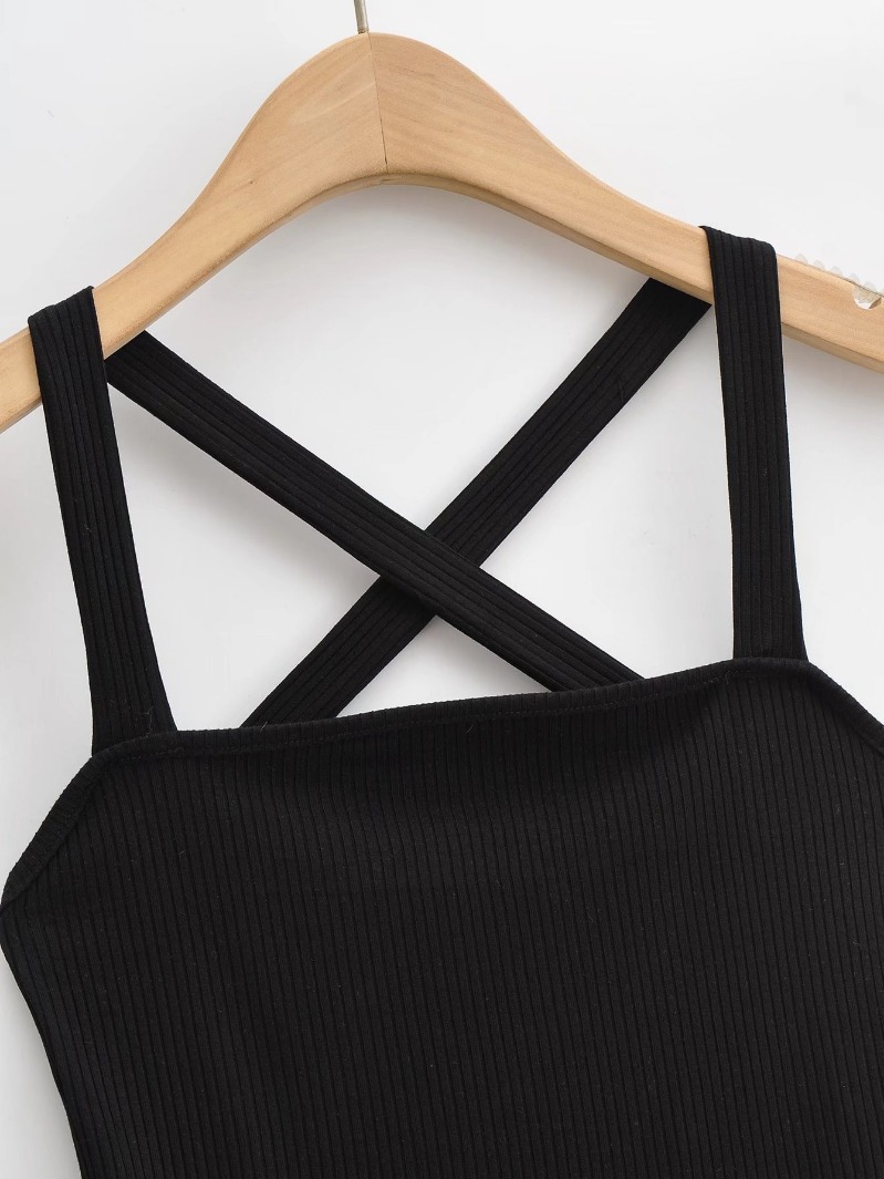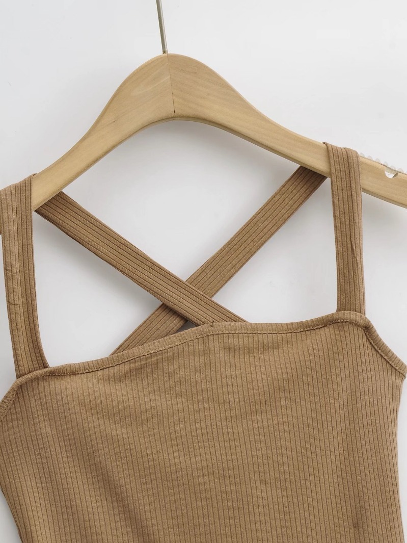 새로운 섹시한 스파이스 걸 원피스 등이없는 크로스 넥 캐미솔 여성의베이스 허리 슬리밍 쇼트 탑스토어 가기