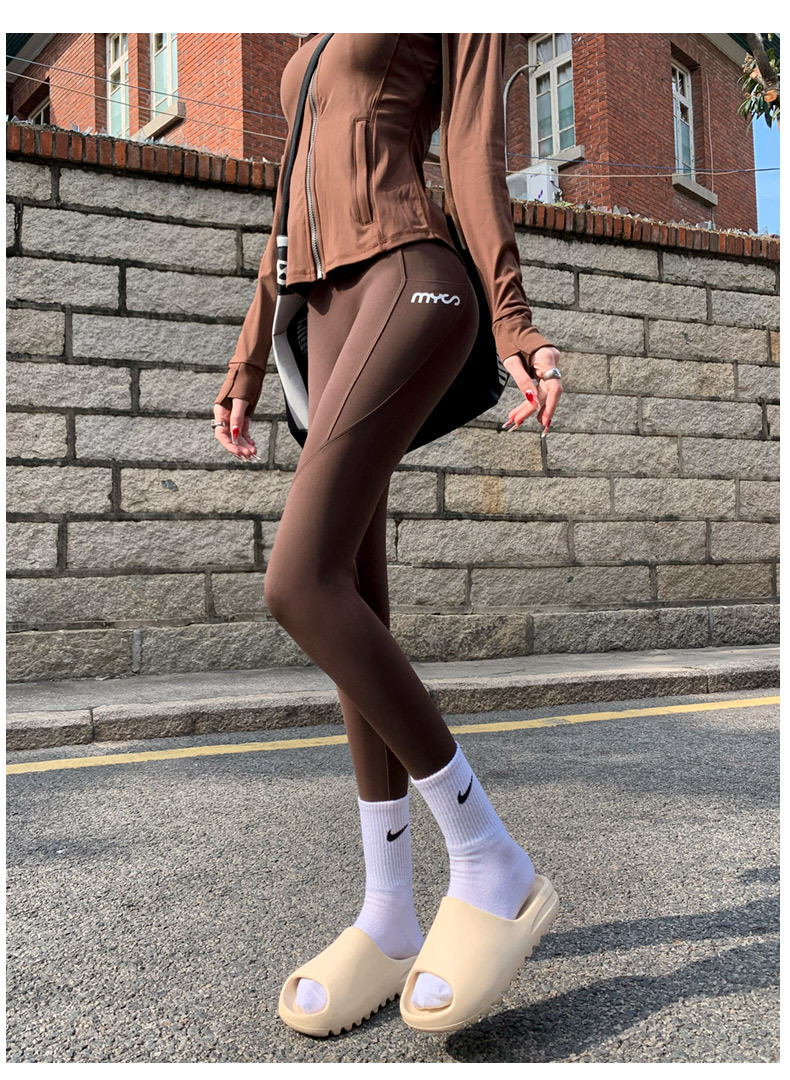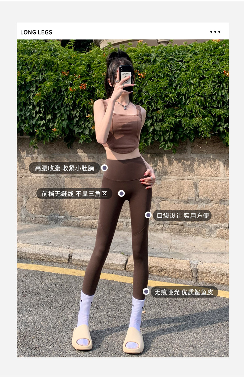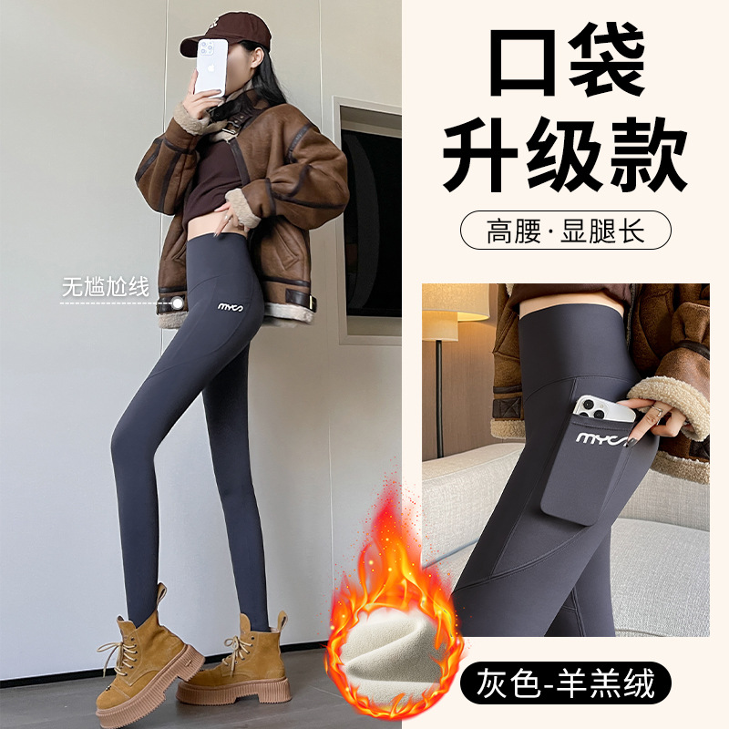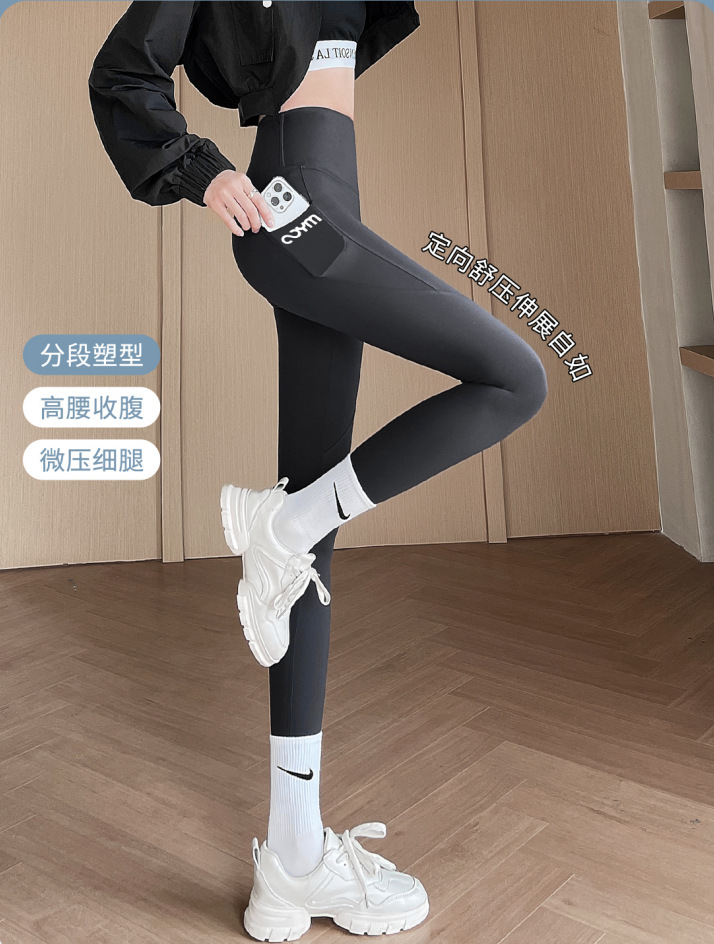 레깅스 여성의 가을과 겨울 새로운 상어 바지 사이드 포켓 스포츠 하이 웨이스트 복부 팅커 당혹 라인 바비 요가 바지 트렌디