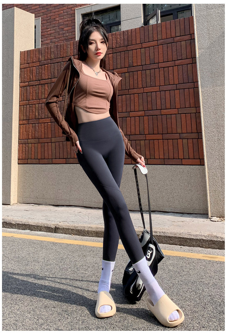 레깅스 여성의 가을과 겨울 새로운 상어 바지 사이드 포켓 스포츠 하이 웨이스트 복부 팅커 당혹 라인 바비 요가 바지 트렌디스토어 가기