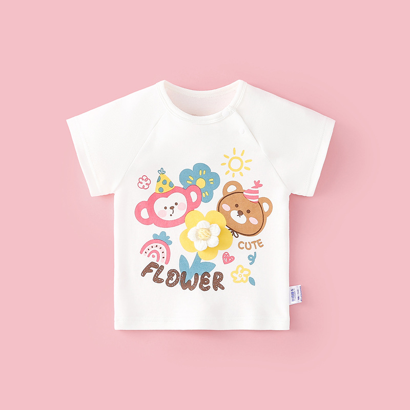 어린 이용 반팔 티셔츠 소년과 소녀 반팔 바닥 셔츠 여름 얇은면 코트 귀여운 세대