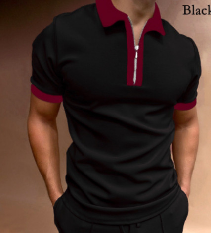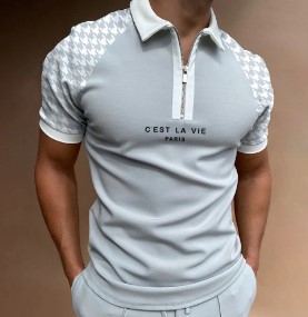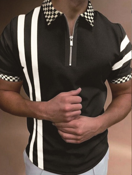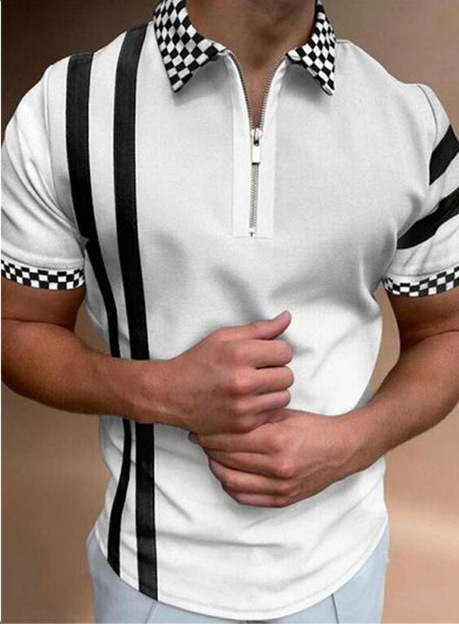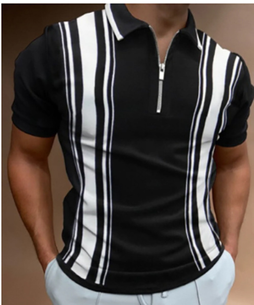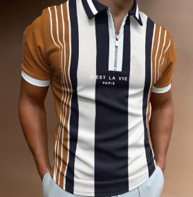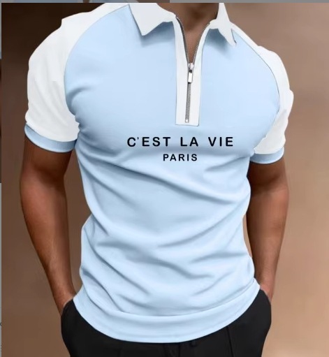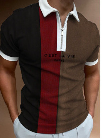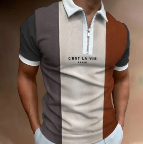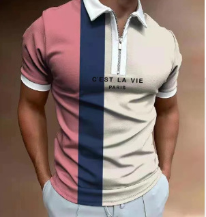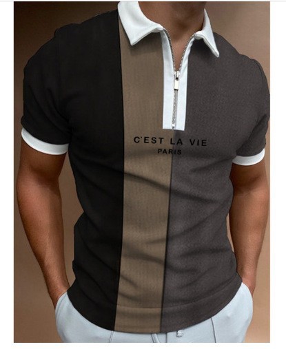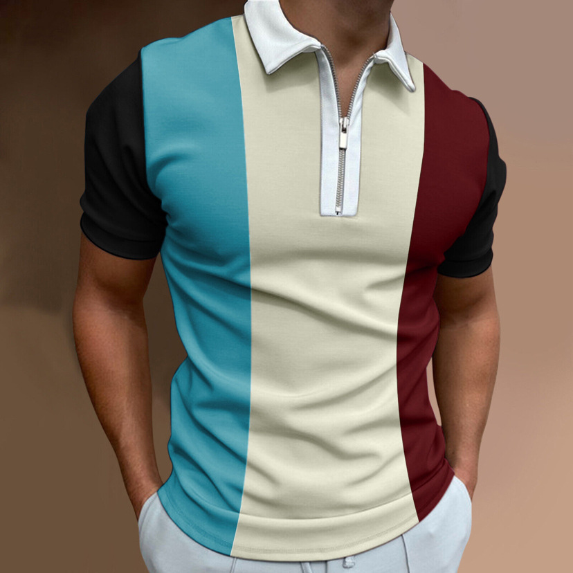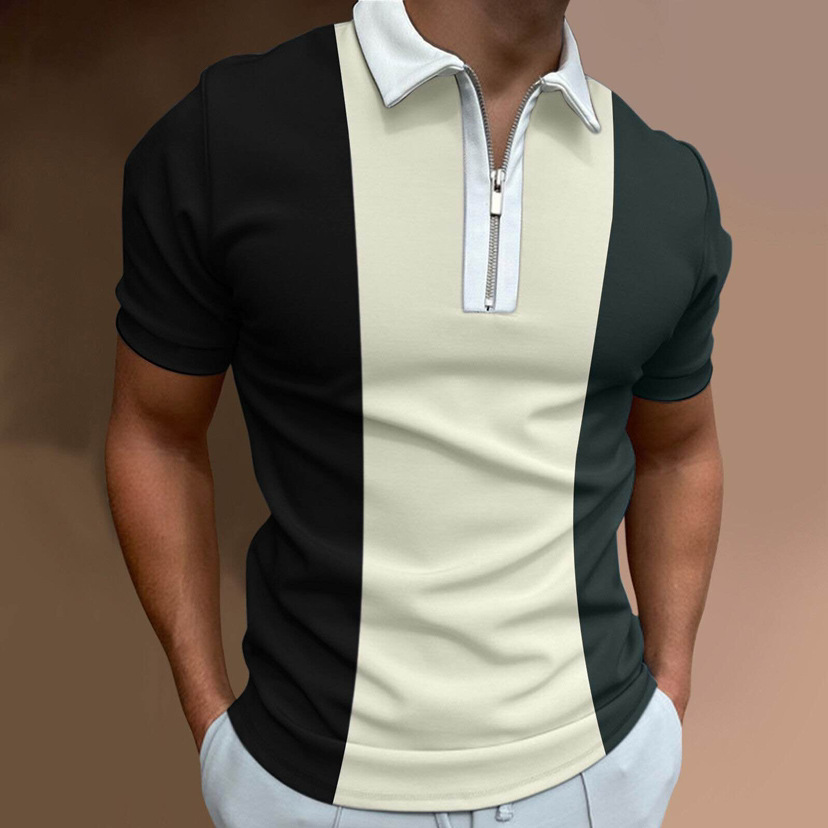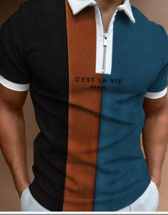 크로스 보더 여름 아마존 남성용 지퍼 라펠 3D 프린트 폴로 셔츠 여러 가지 빛깔의 캐주얼 컬러 블록 반팔 폴로 셔츠