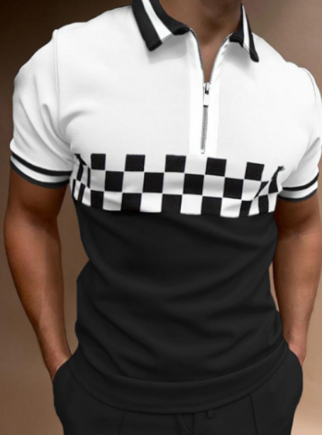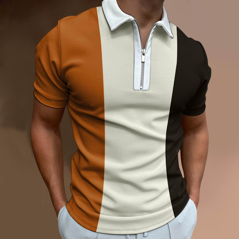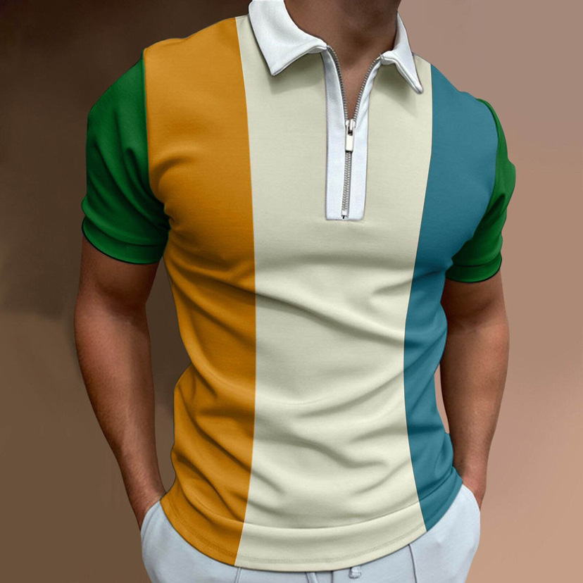 크로스 보더 여름 아마존 남성용 지퍼 라펠 3D 프린트 폴로 셔츠 여러 가지 빛깔의 캐주얼 컬러 블록 반팔 폴로 셔츠스토어 가기
