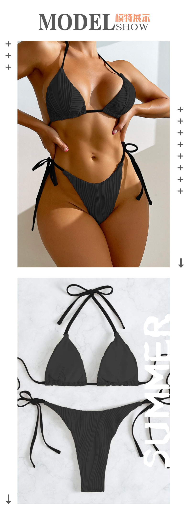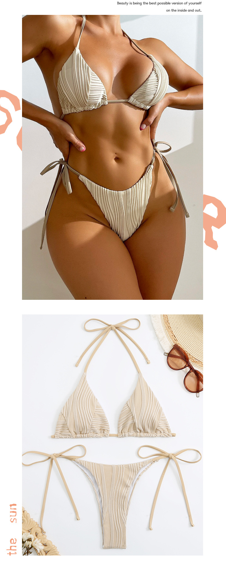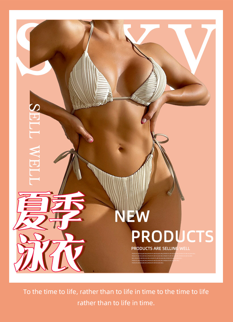 2023 크로스 보더 유럽과 미국 아마존 새로운 교수형 목 스트랩 섹시한 비키니 레이스 업 등이없는 스플릿 수영복 여성스토어 가기