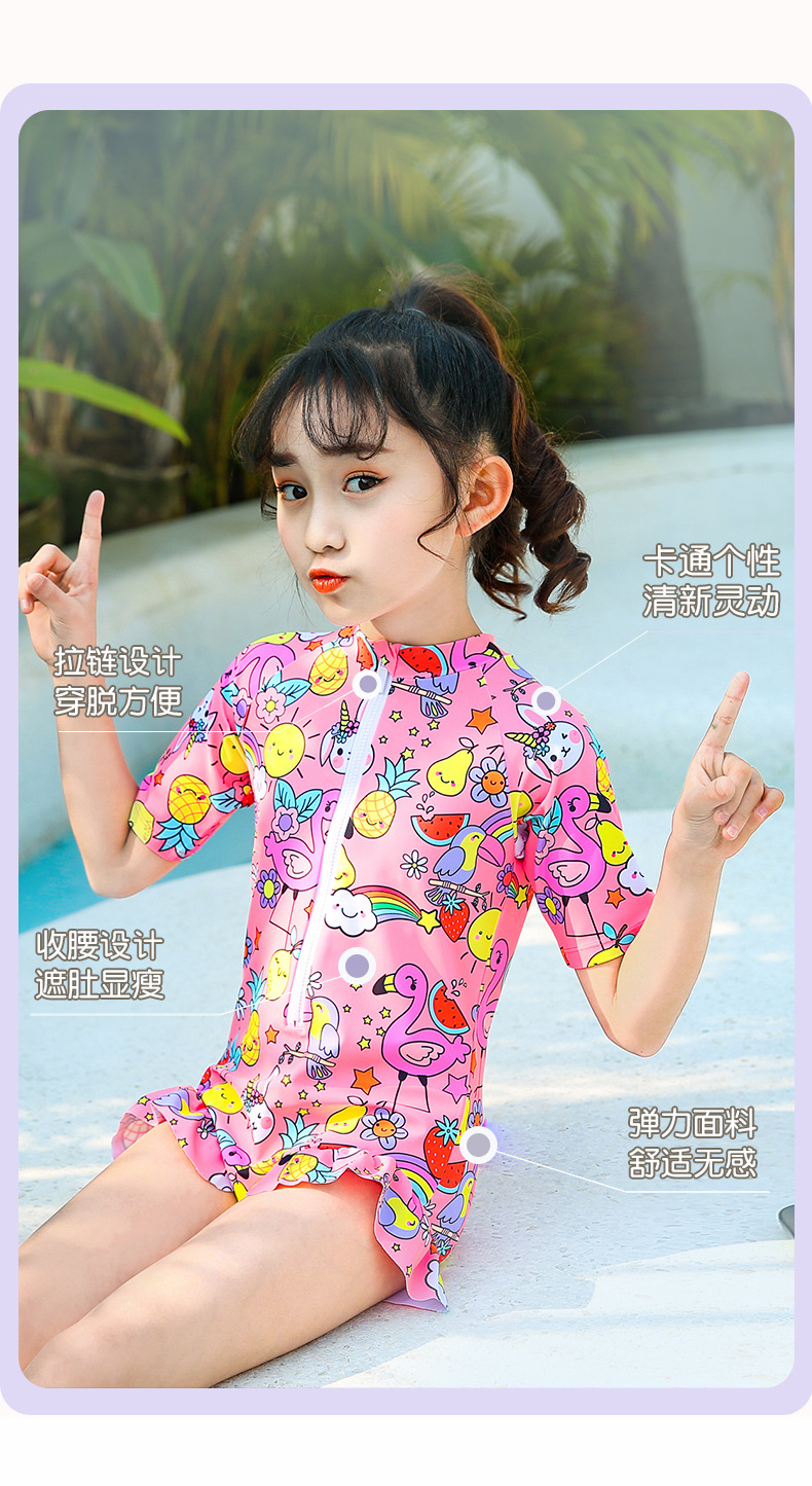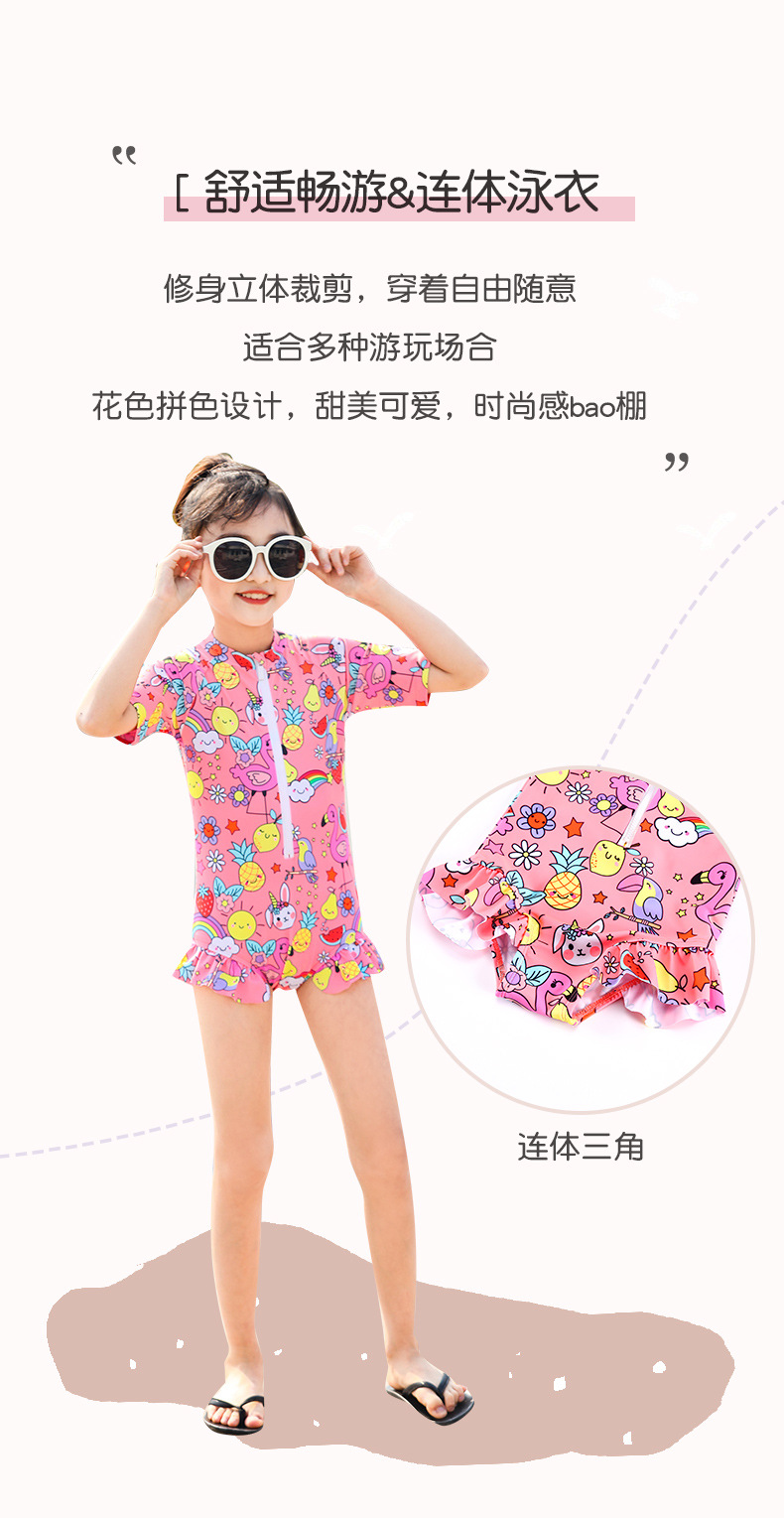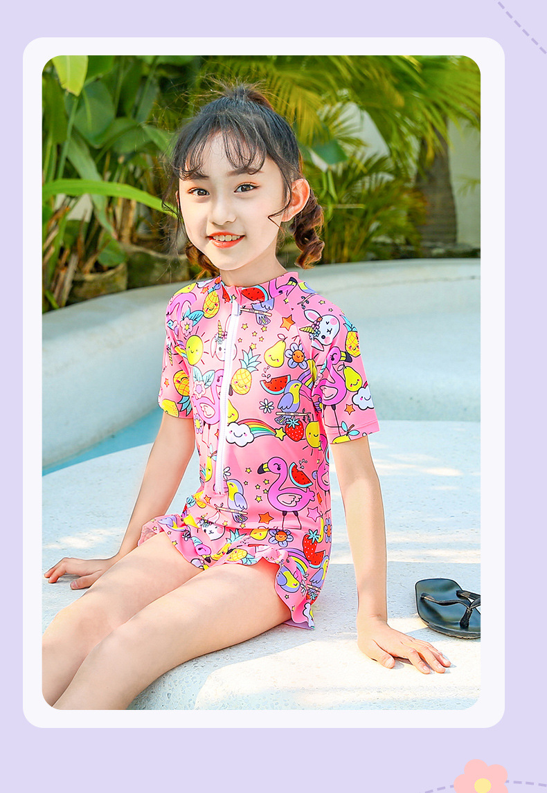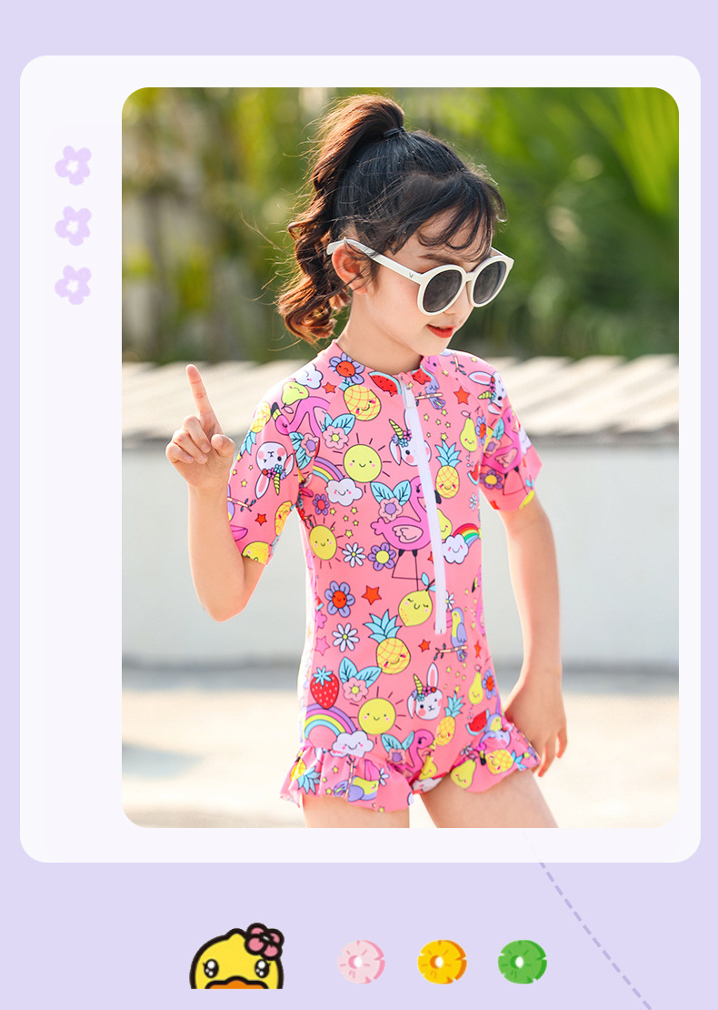 국경 간 소녀 원피스 수영복 유럽과 미국 스타일의 반팔 꽃 무늬 아기 소녀 어린이 수영복 온천 여름 속건스토어 가기
