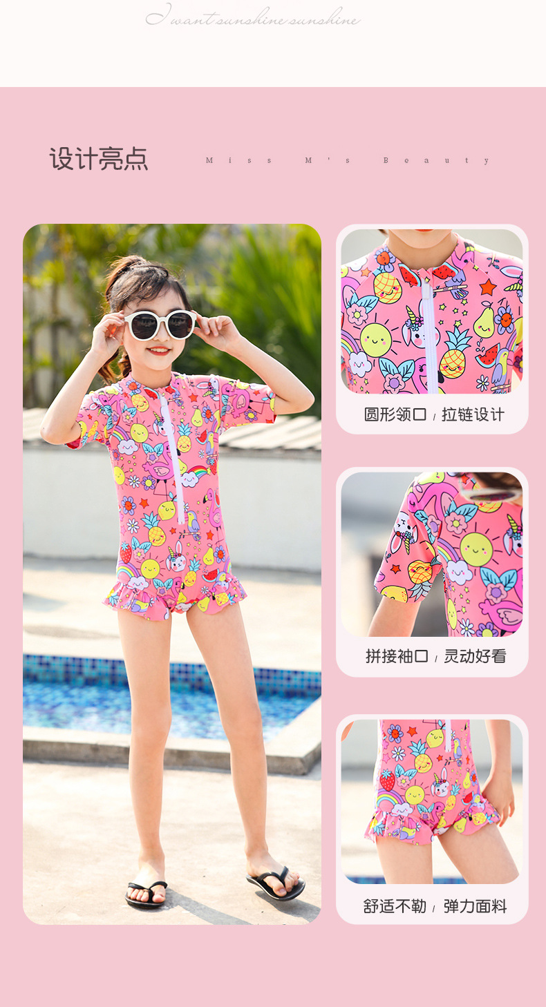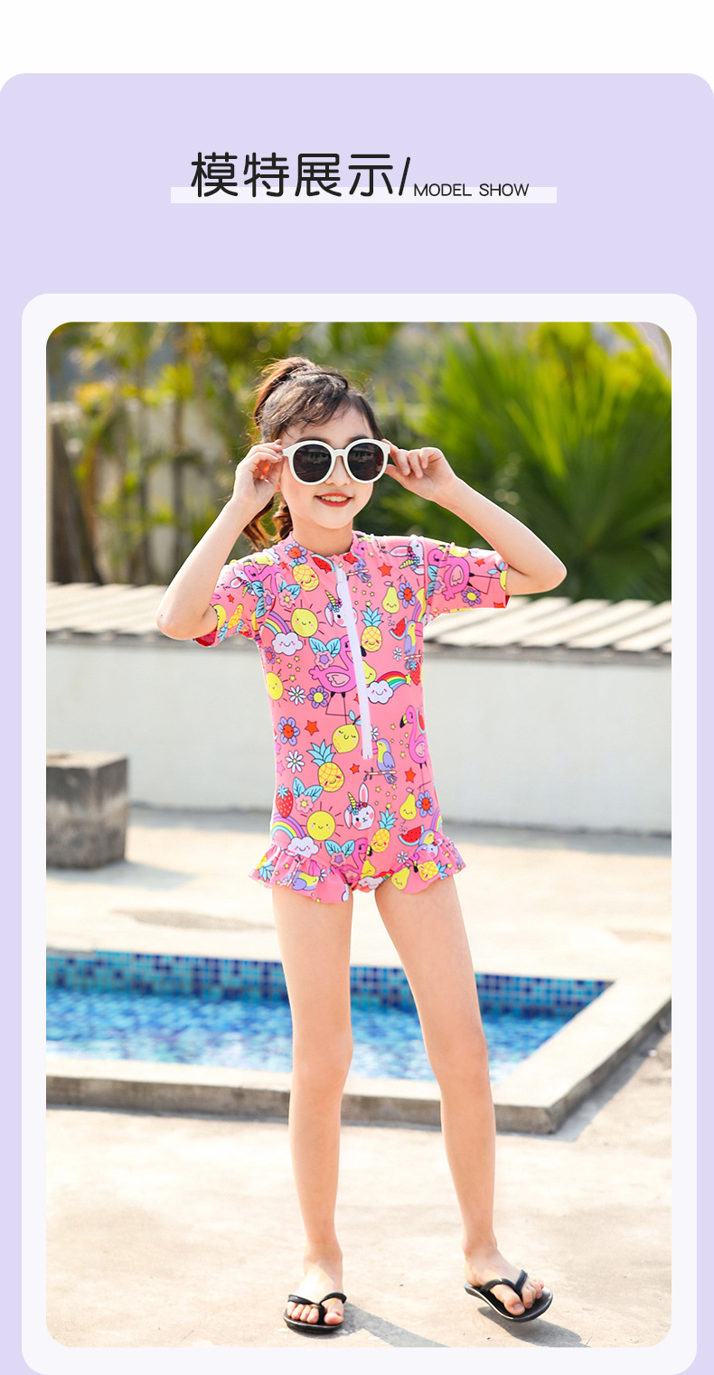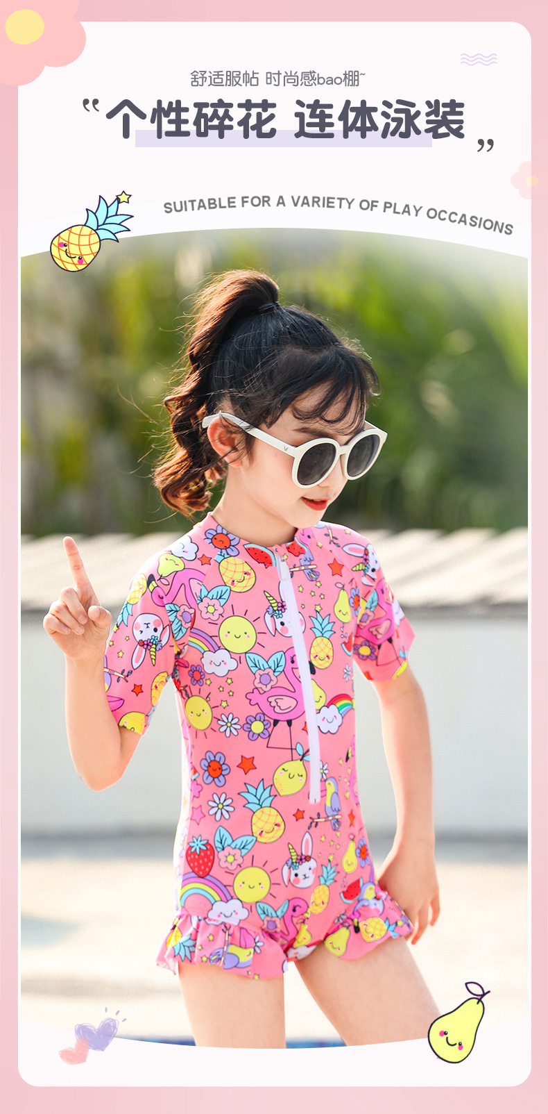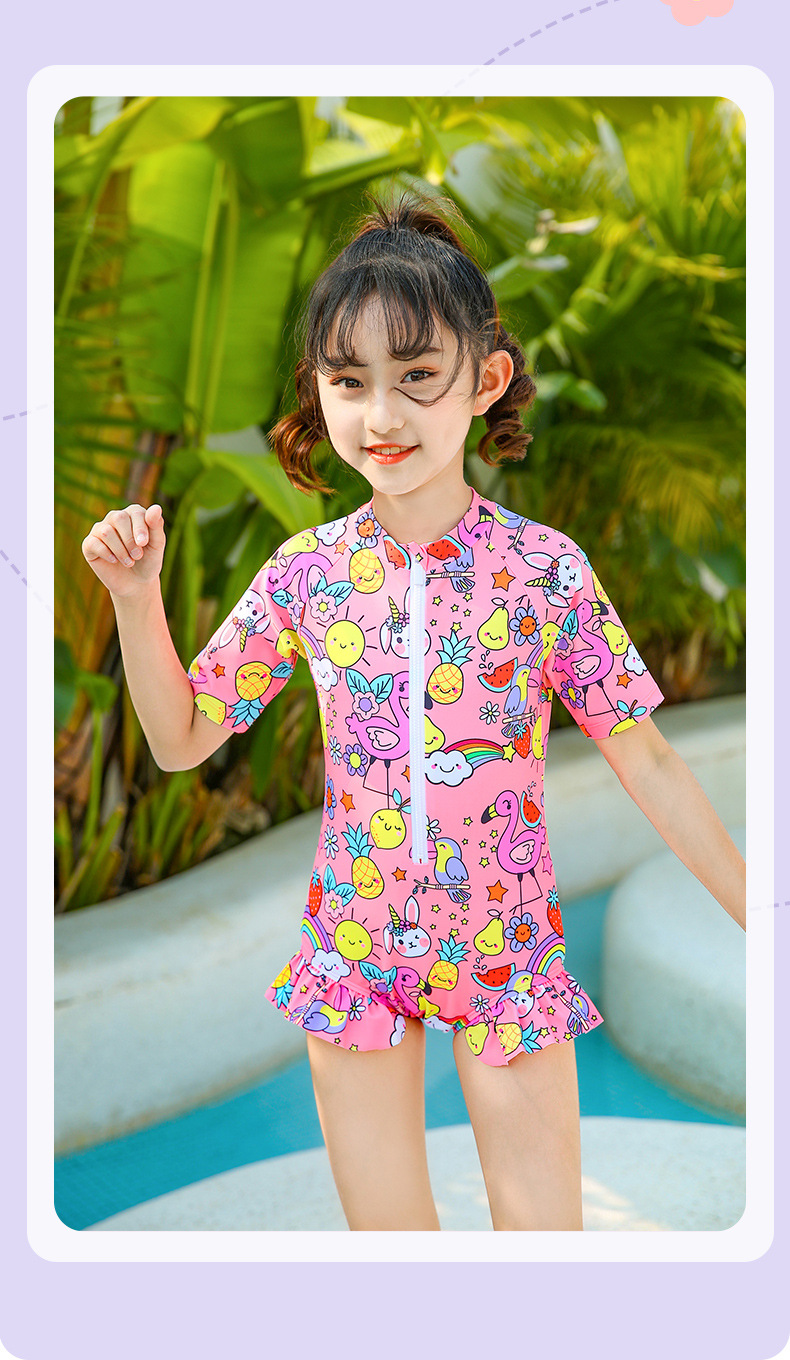 국경 간 소녀 원피스 수영복 유럽과 미국 스타일의 반팔 꽃 무늬 아기 소녀 어린이 수영복 온천 여름 속건스토어 가기