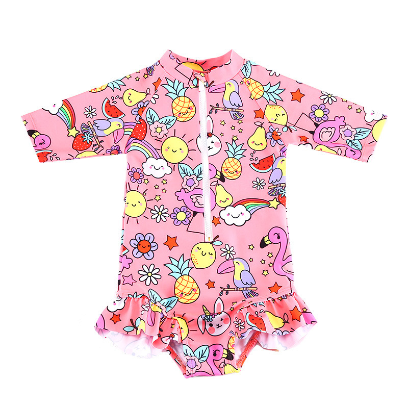국경 간 소녀 원피스 수영복 유럽과 미국 스타일의 반팔 꽃 무늬 아기 소녀 어린이 수영복 온천 여름 속건