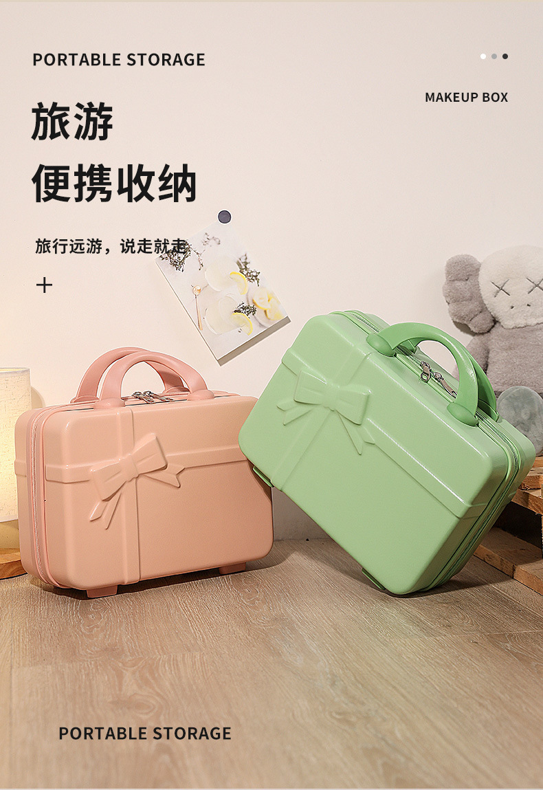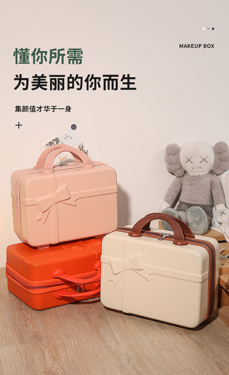 빈티지 14 인치 보우 메이크업 케이스 여행 가방 동반 선물 수하물 작은 신선한 여행 케이스 보관 케이스