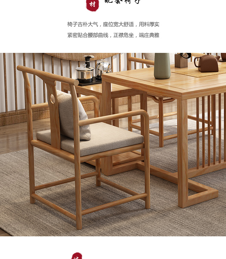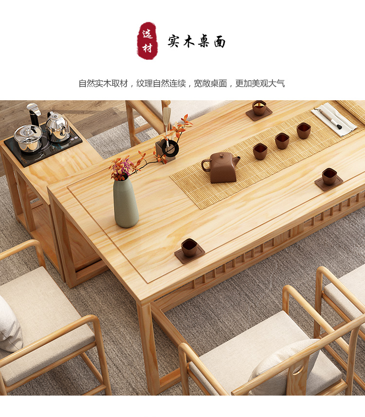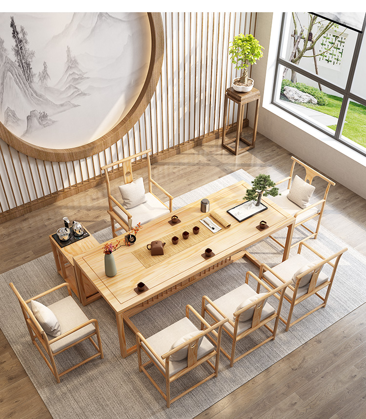 새로운 중국 스타일 로그 차 테이블과 의자 조합 선 차 테이블 차 테이블 가정용 단단한 나무 차 테이블 쿵푸 차 테이블 간단한