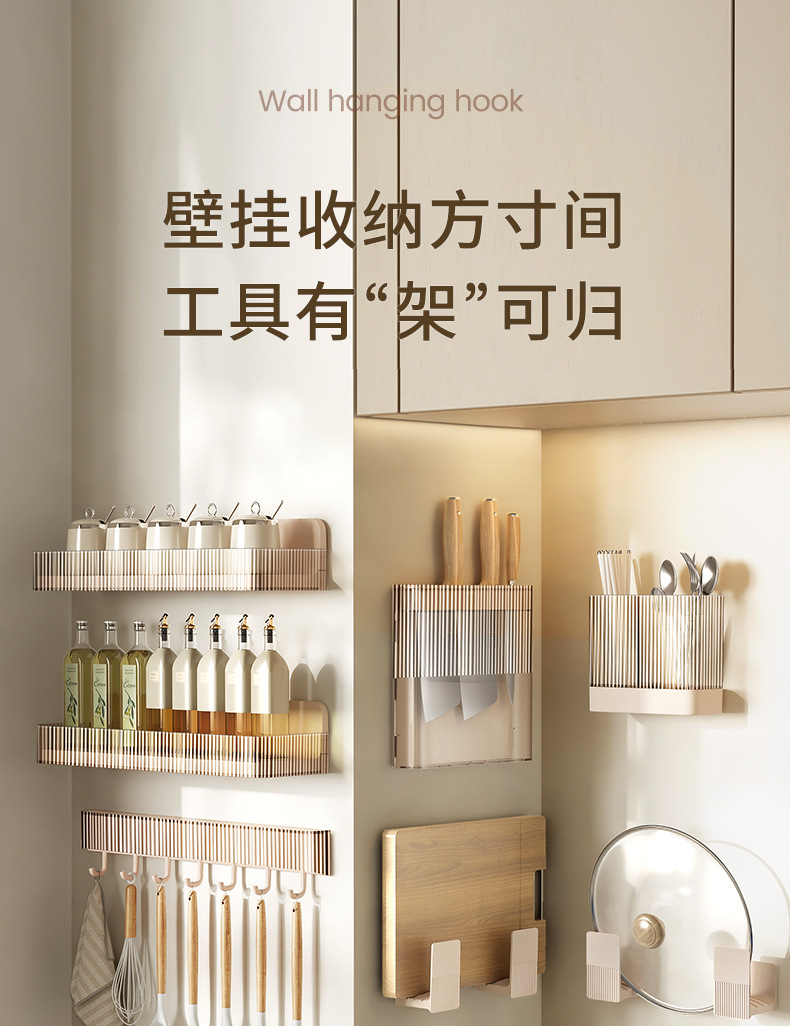 [Liangshe 오리지널] 주방 용품 벽걸이 조미료 보관 랙 후크 젓가락 케이지 나이프 랙 냄비 커버 랙 세트