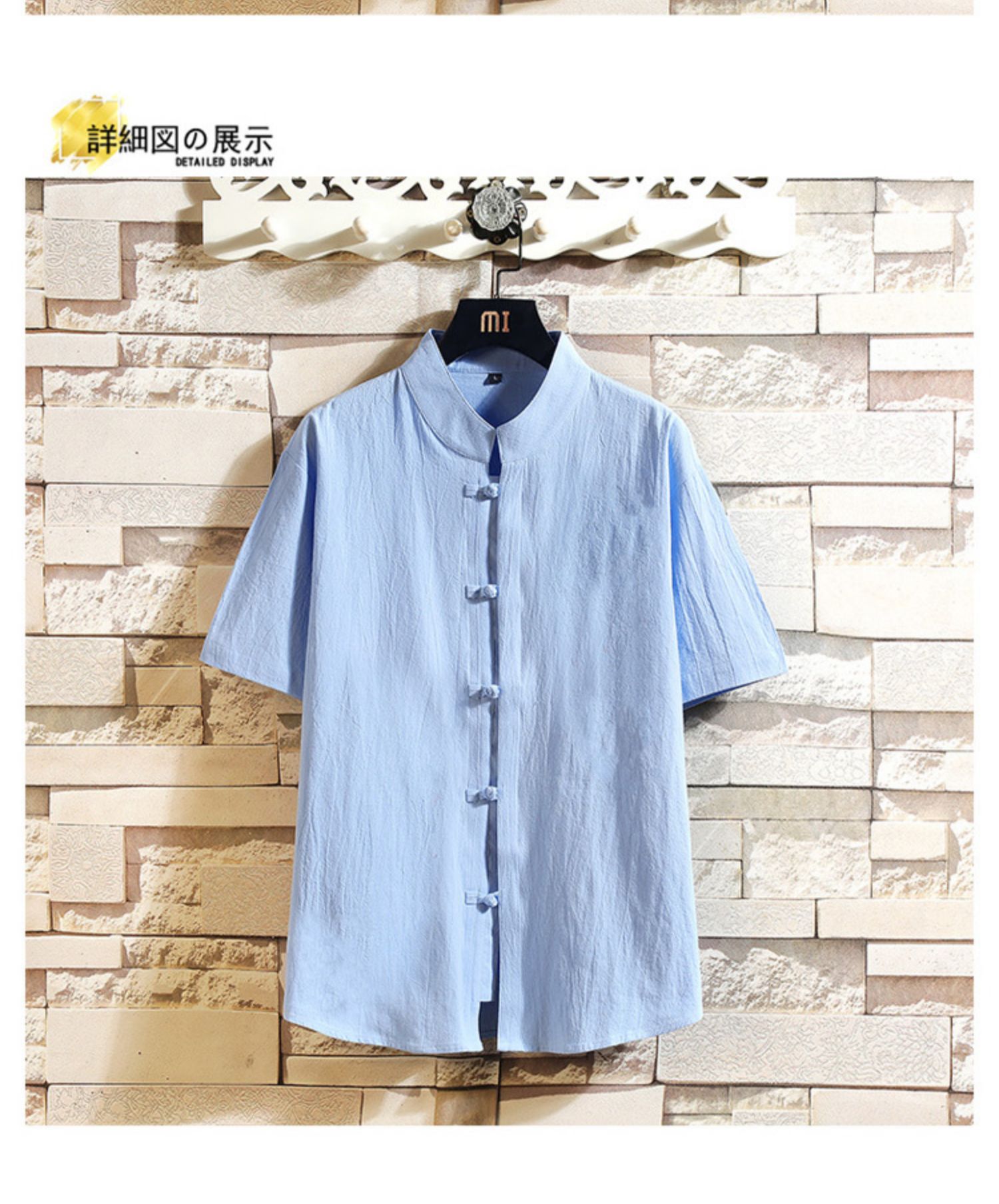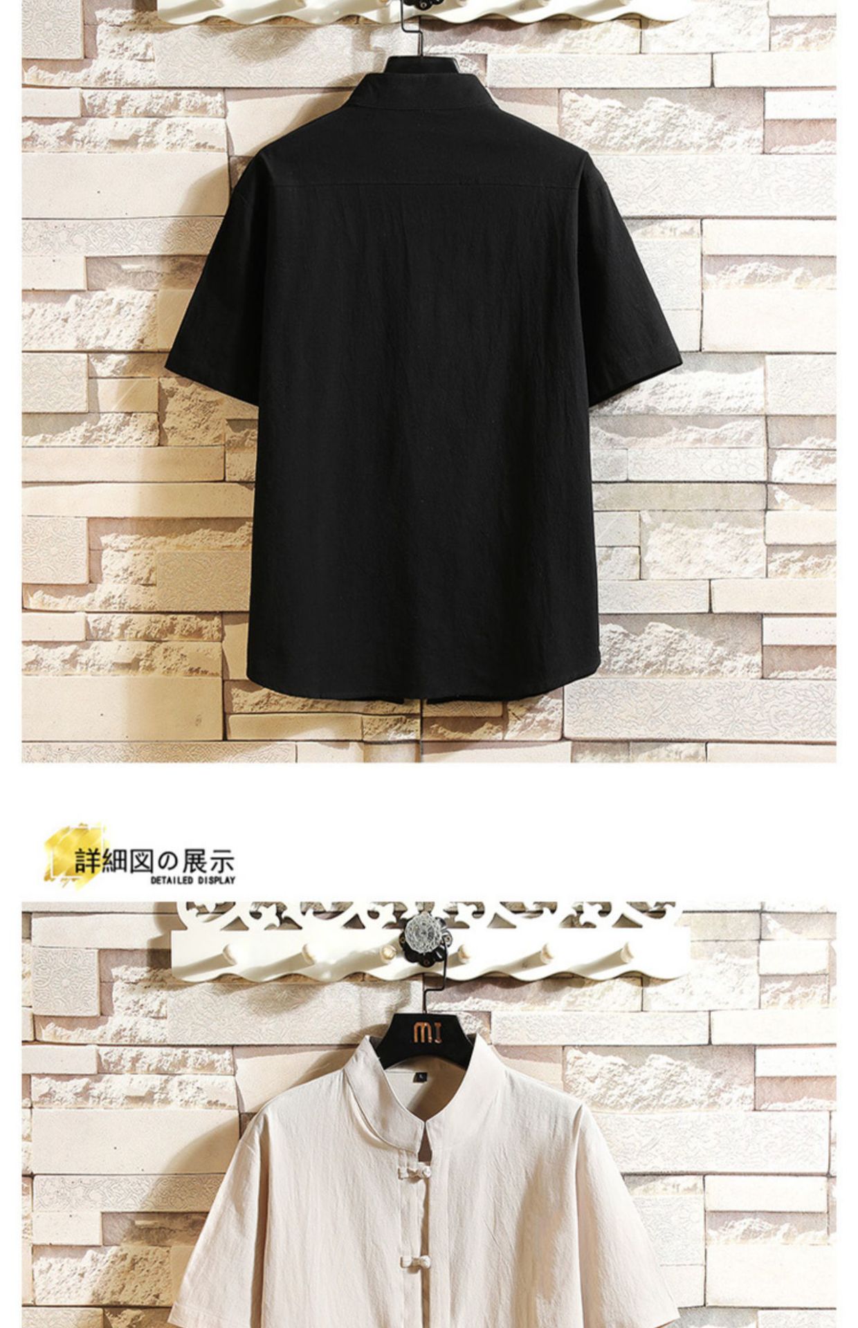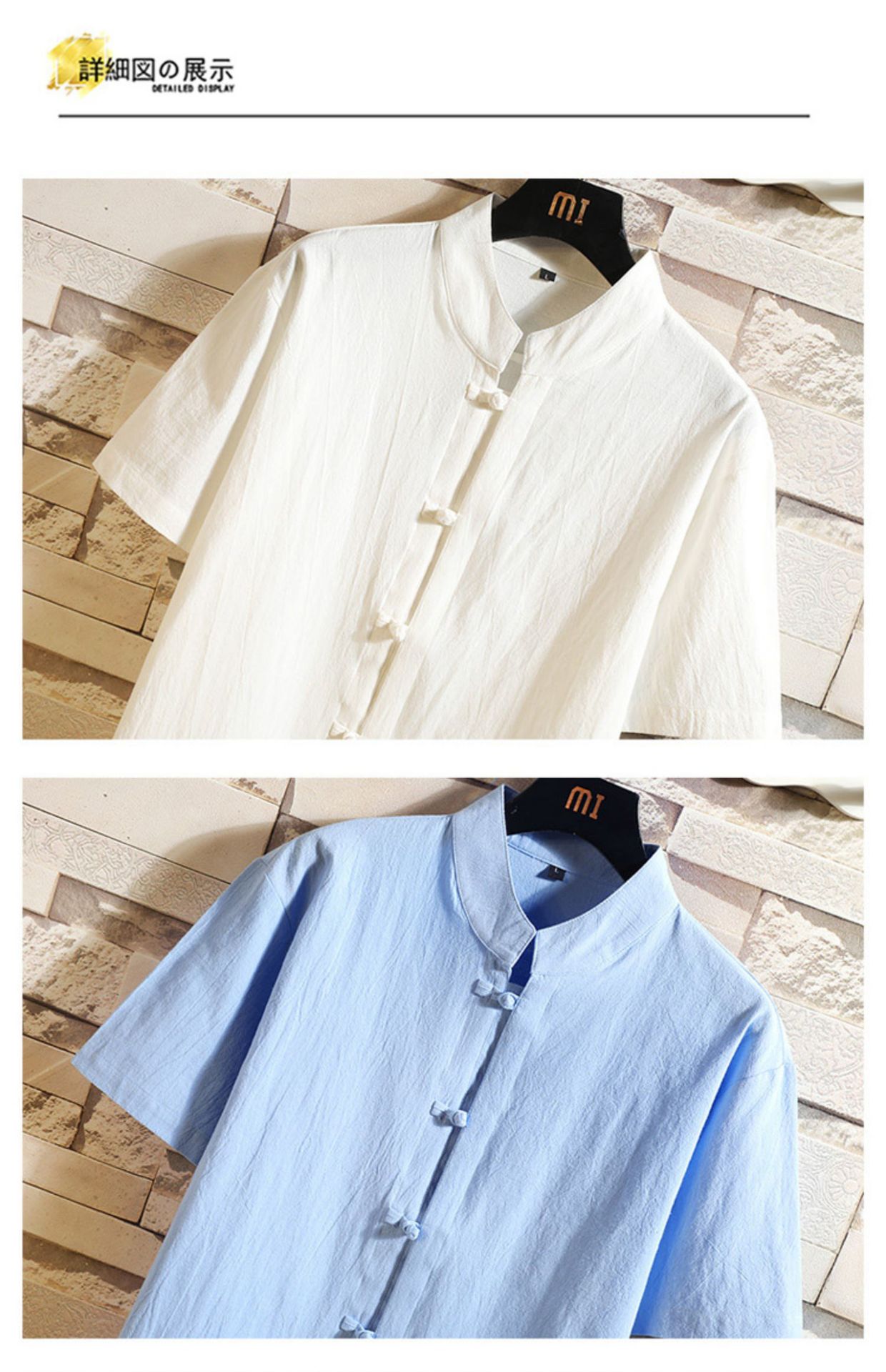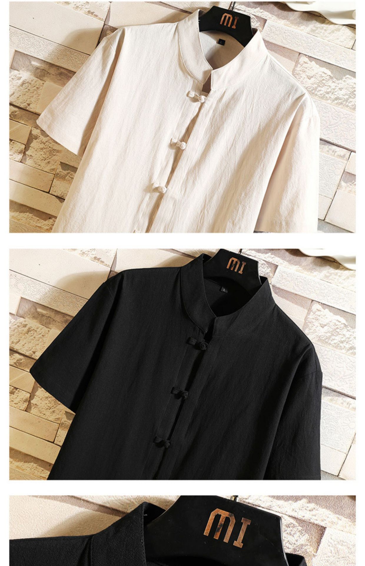 여름 플러스 사이즈 중국 스타일 버튼 반팔 셔츠 남자의 당나라 세트 고대 세트 일본 빈티지 중국 튜닉 민족 셔츠 남자스토어 가기