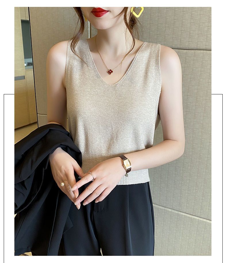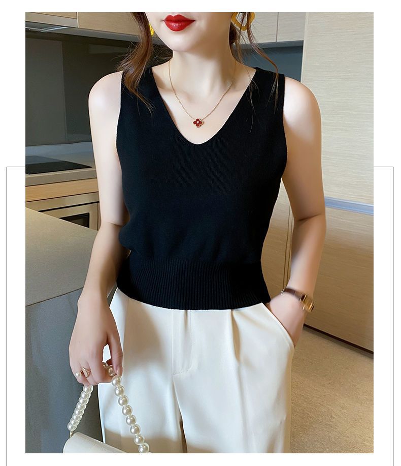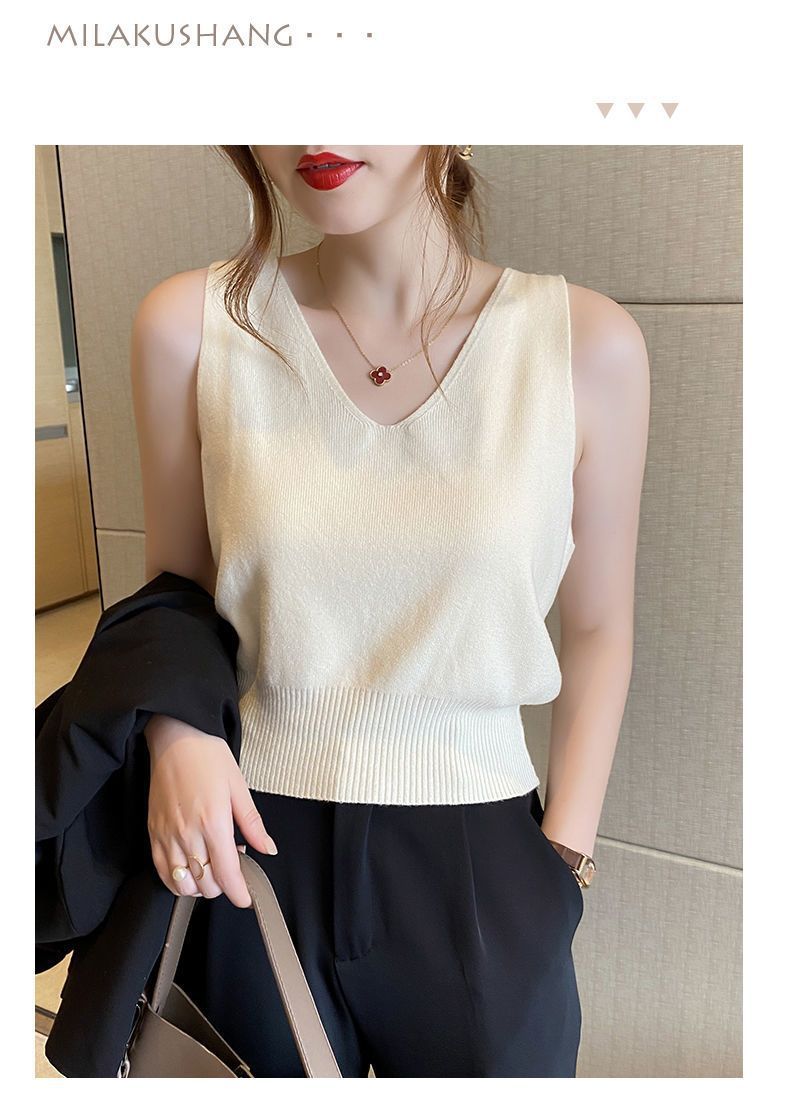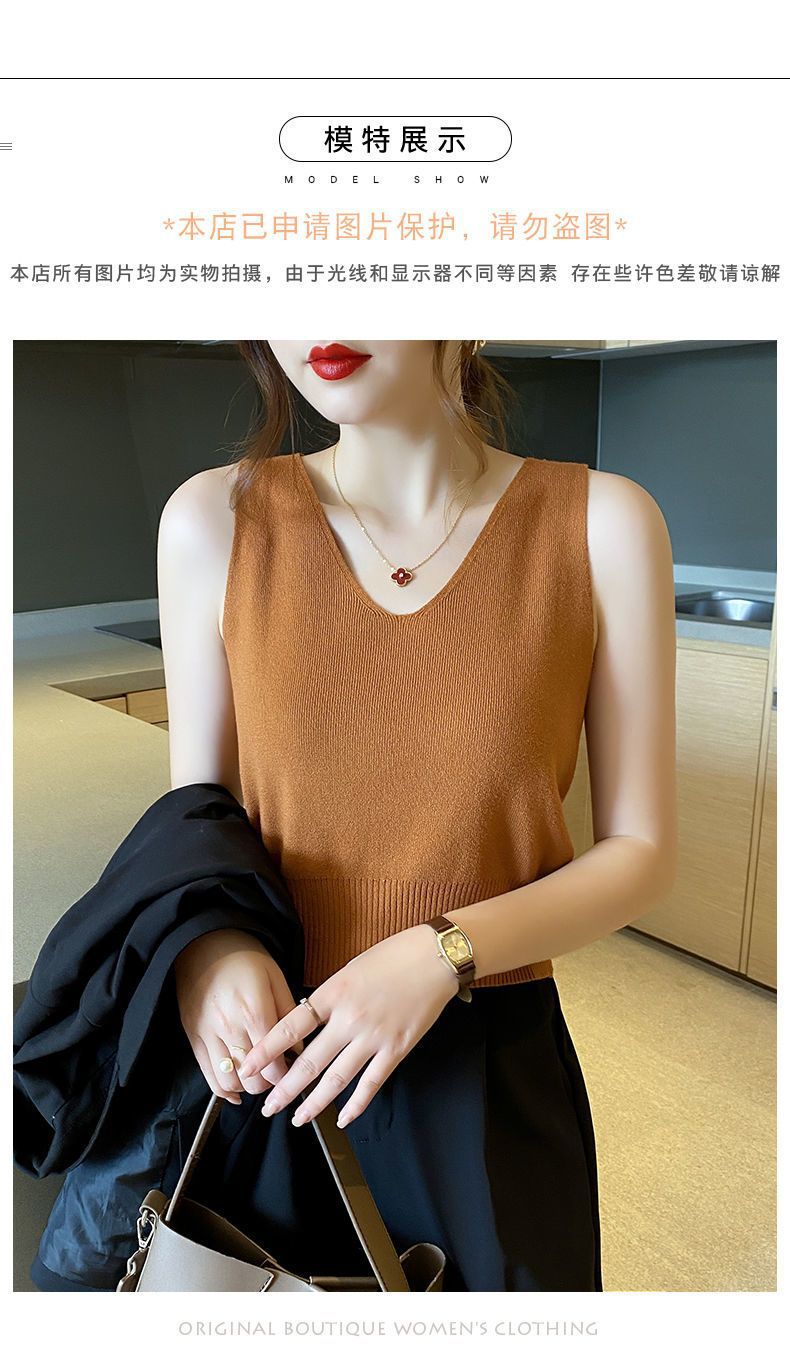 세트 베이스 셔츠 여자의 여름 아이스 실크 V-넥 조끼 탑 프랑스 시크 작은 슬링 니트웨어 겉옷스토어 가기