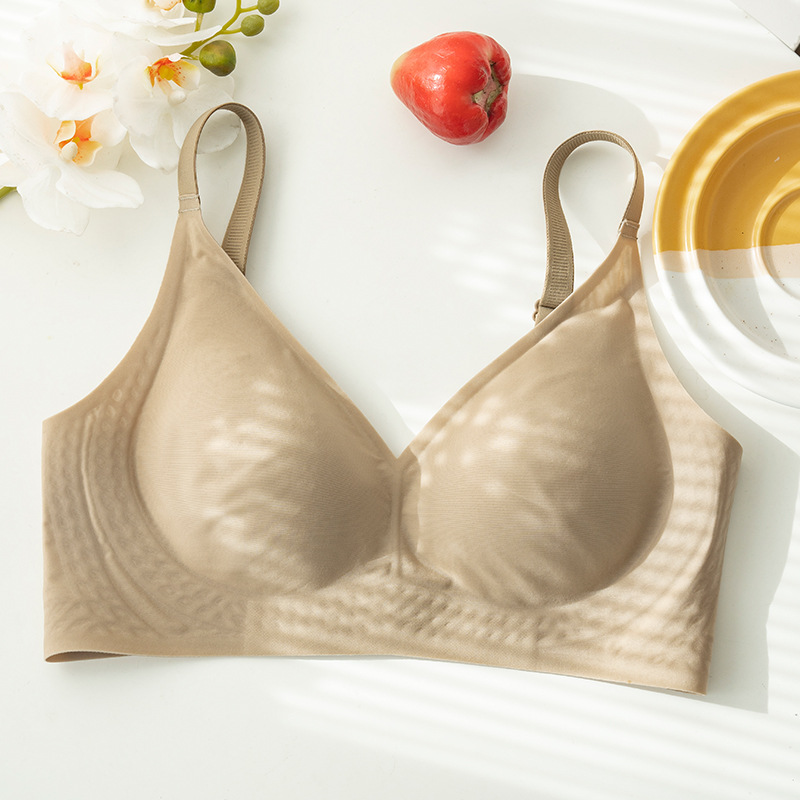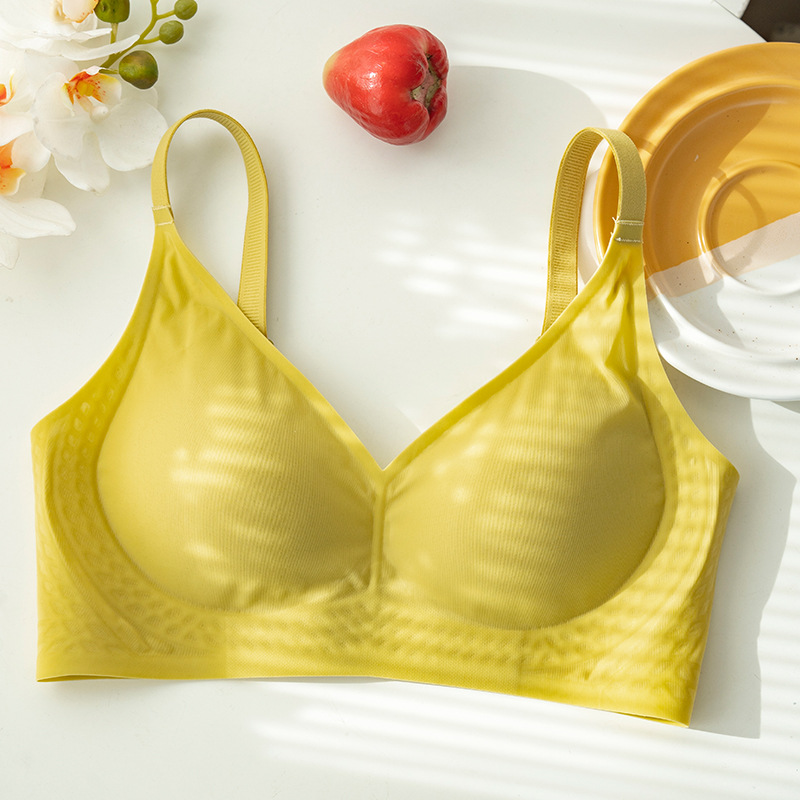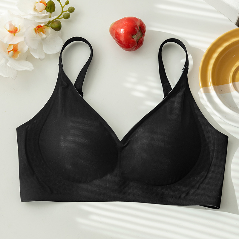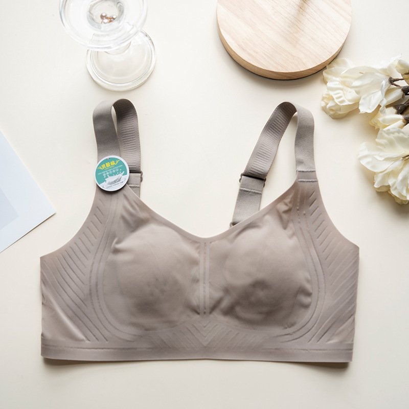 아이스 실크 심리스 브라 여름 얇은 통기성 컵 큰 가슴 작은 대형 브라 라텍스 컵 나일론 속옷 여성용스토어 가기
