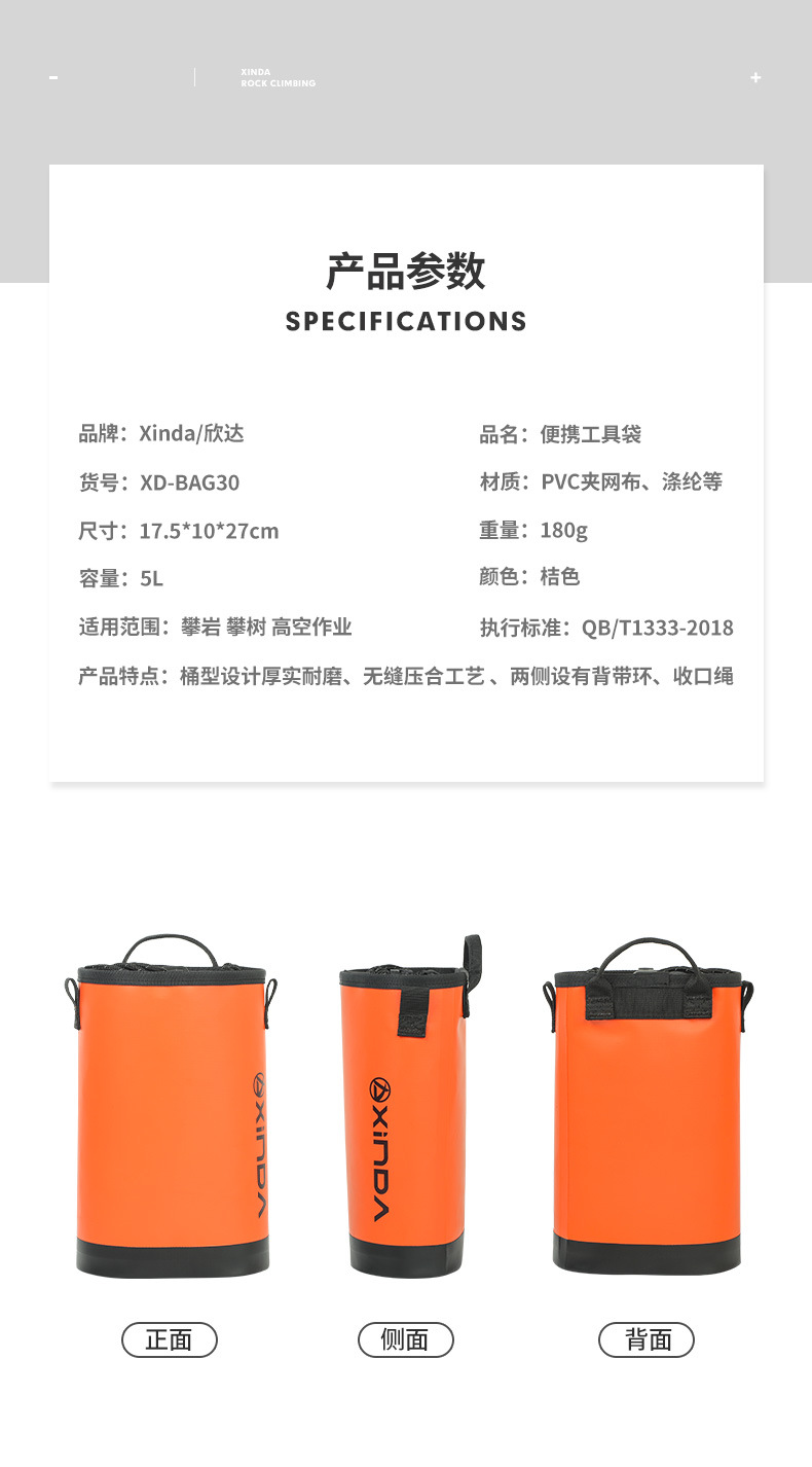 Xinda 야외 도구 가방 바위 등반 등산 오픈 라인 탐험 터널 보관 가방 바위 못 전기 드릴 휴대용 장비 도구 가방스토어 가기