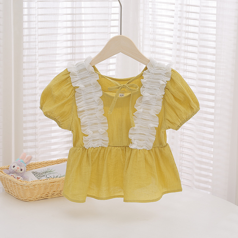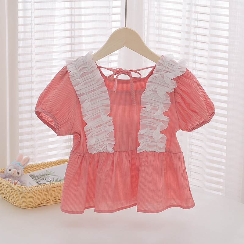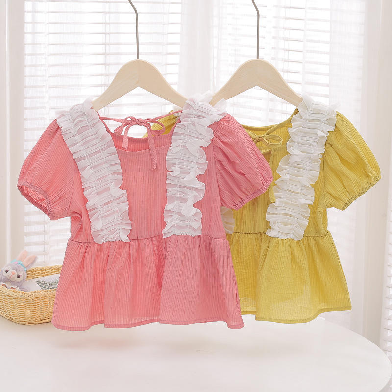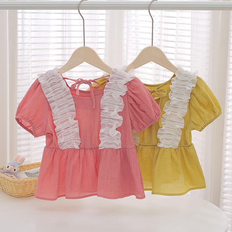 어린이 탑 2023 여름 메쉬베이스 셔츠 소녀 귀여운 셔츠 90-130 사이즈 반팔 샤넬 스타일 인형 셔츠스토어 가기