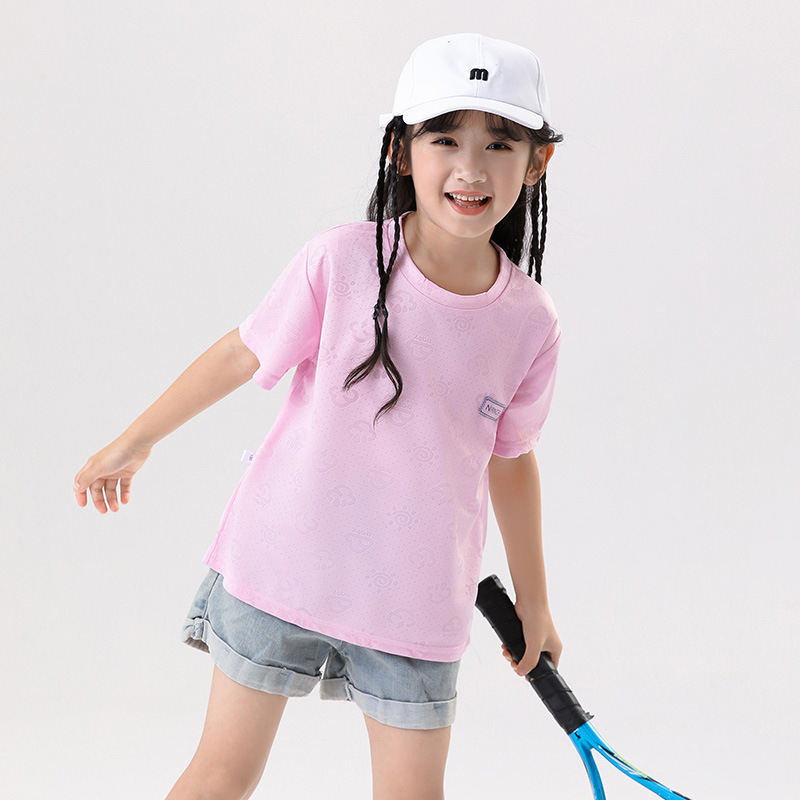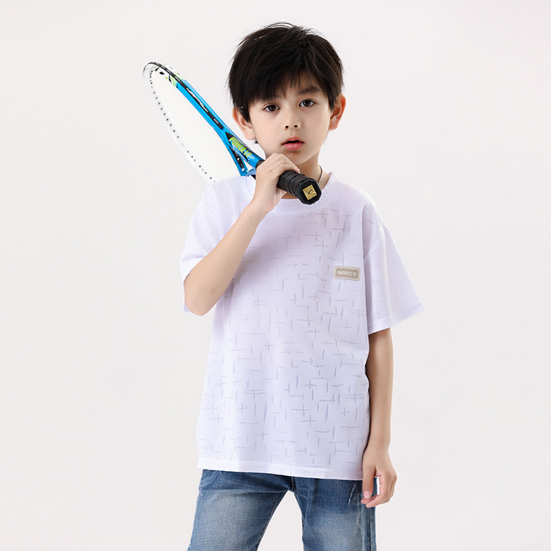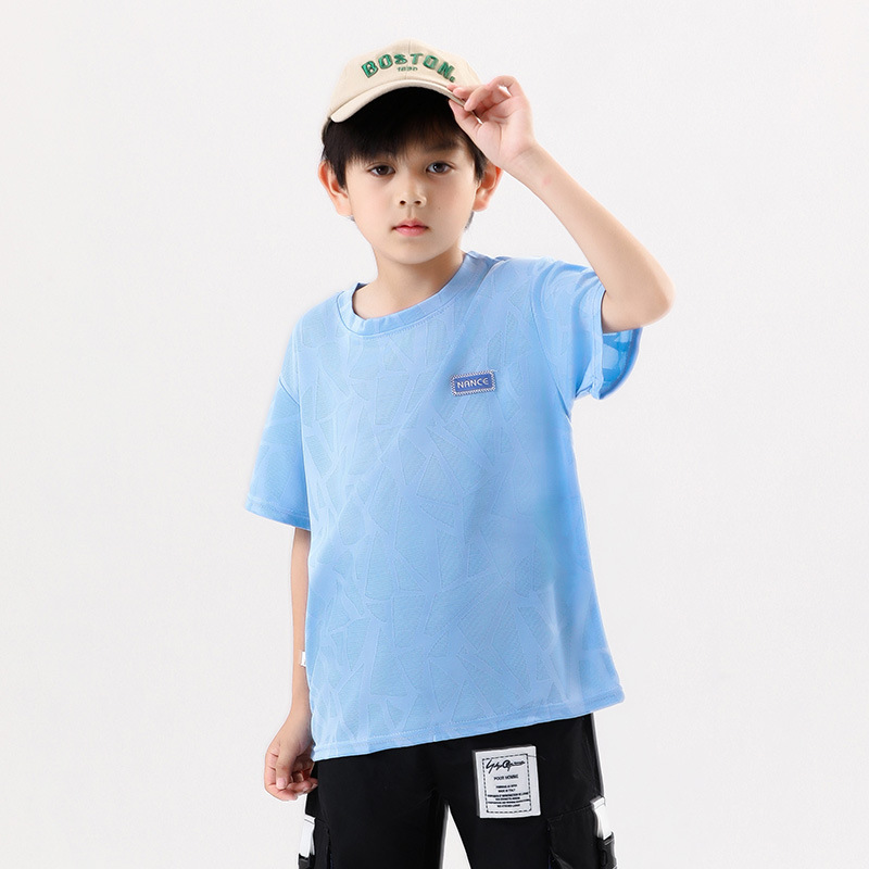 소년 소녀를위한 어린이 반팔 탑 2024 새 여름 티셔츠 운동복 빠른 건조 옷 티셔츠 아동복 도매