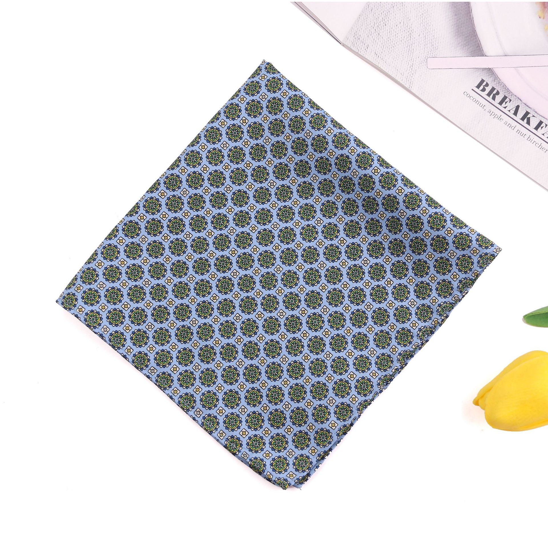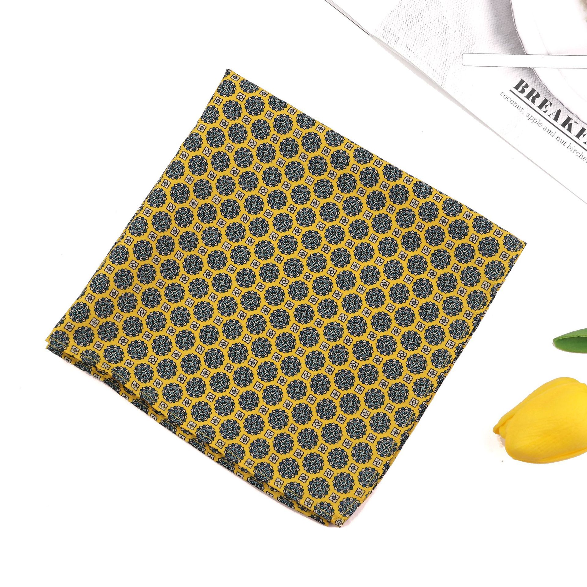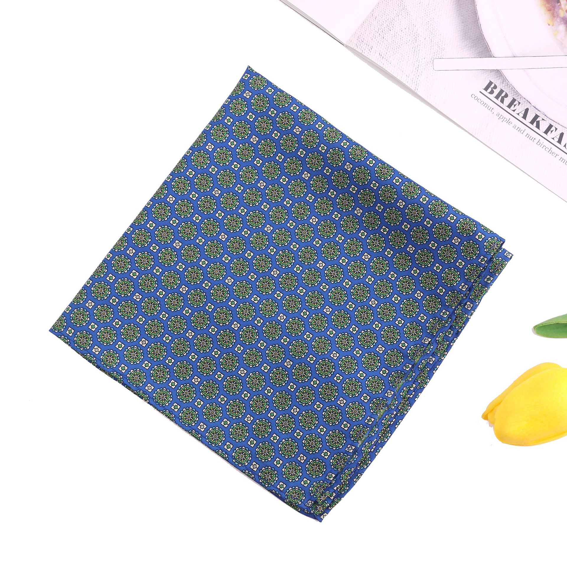재고 빈티지 작은 꽃 남자 세트 포켓 타월 비즈니스 연회 인쇄 폴리 에스테르 실크 스카프 작은 사각형 스카프 도매스토어 가기