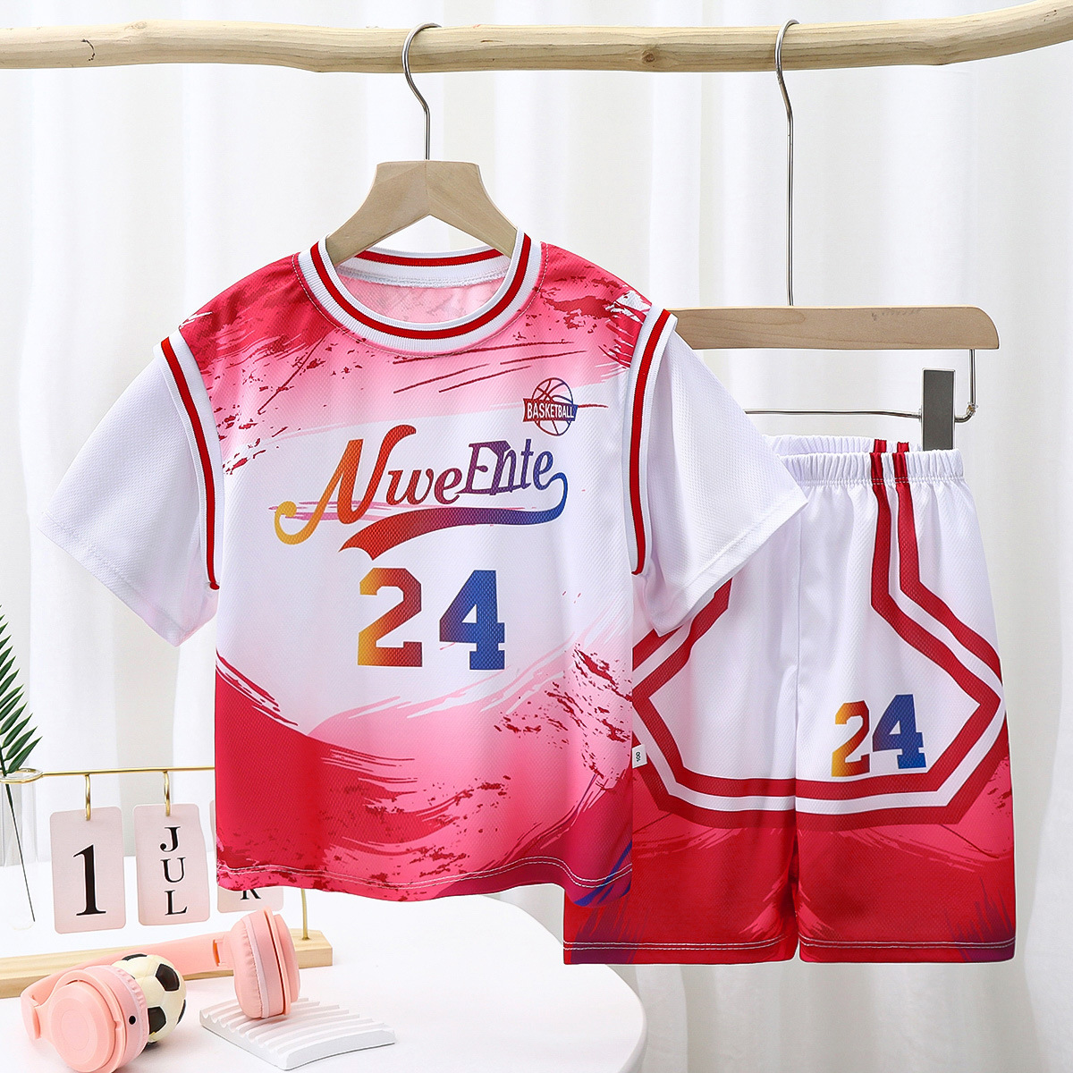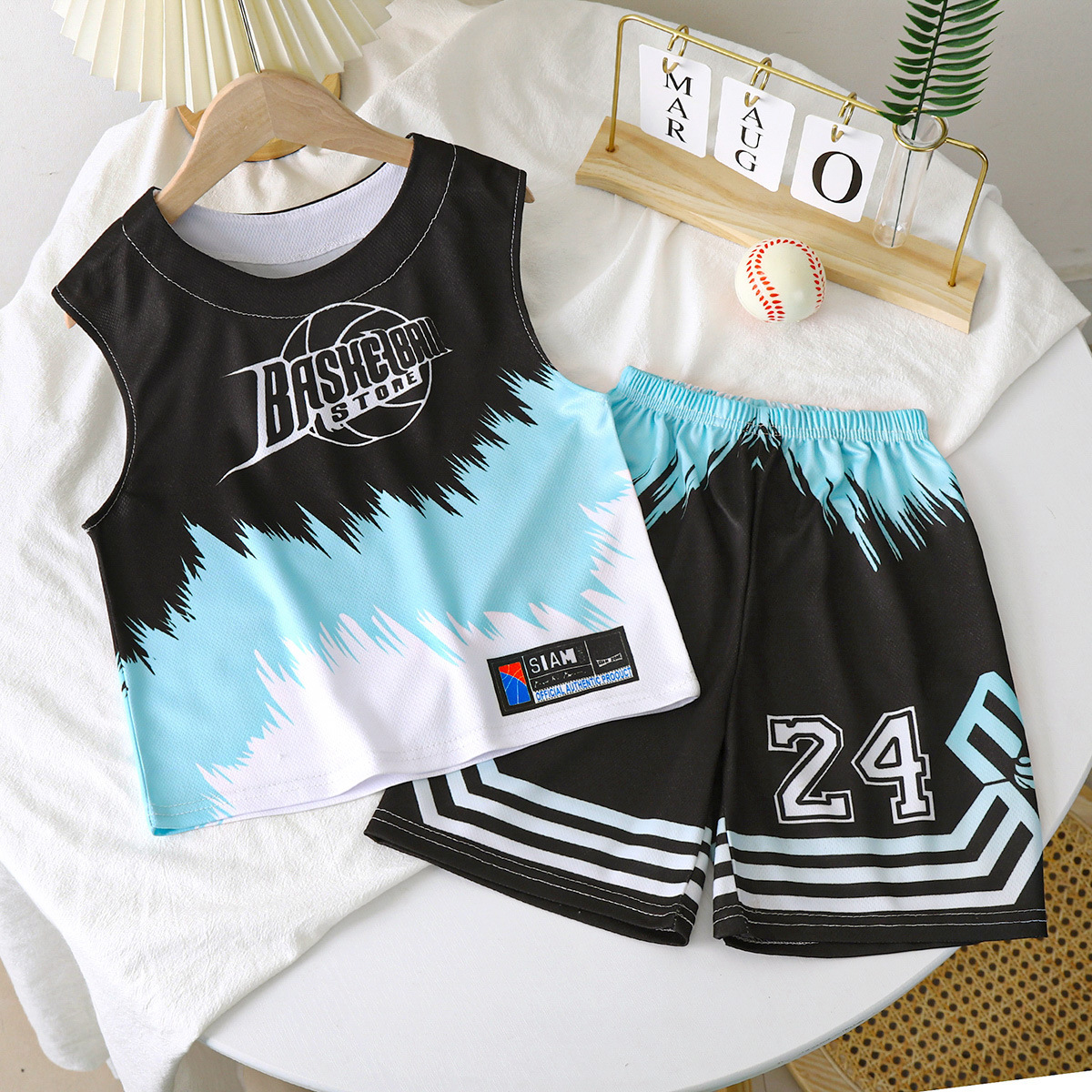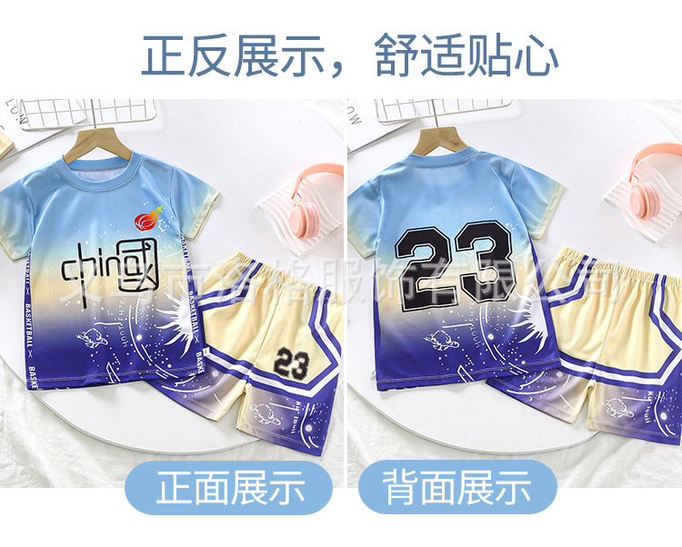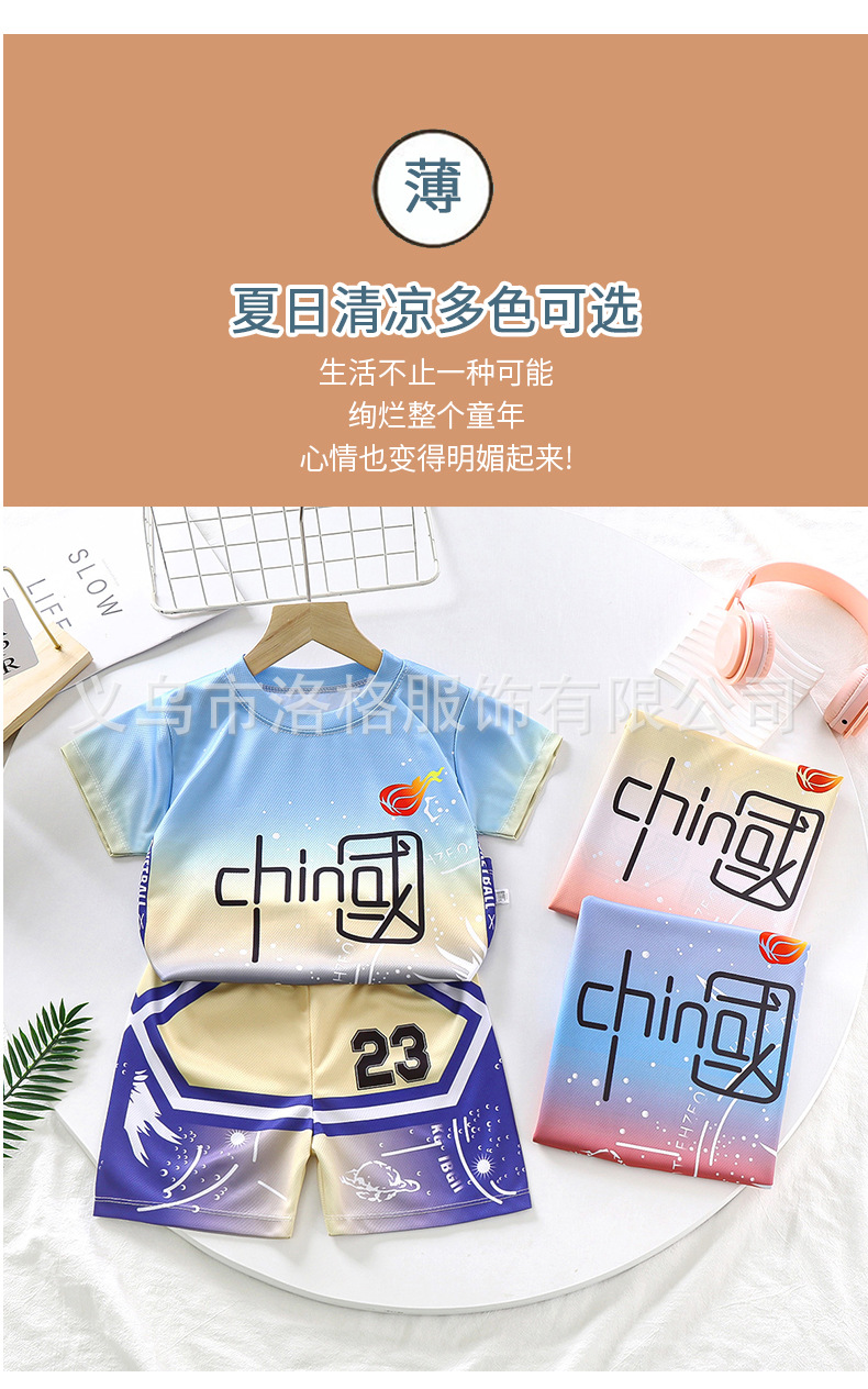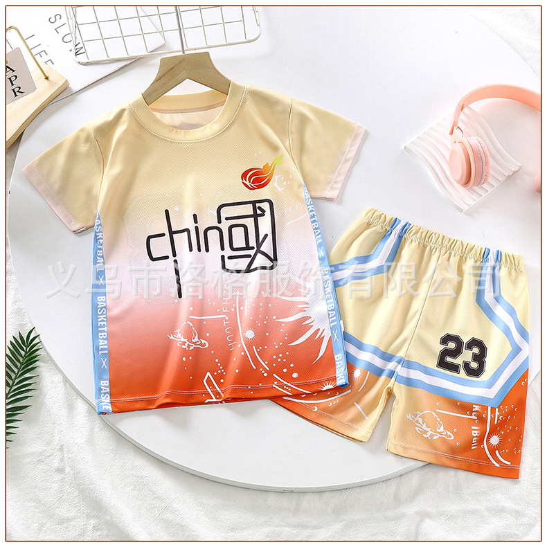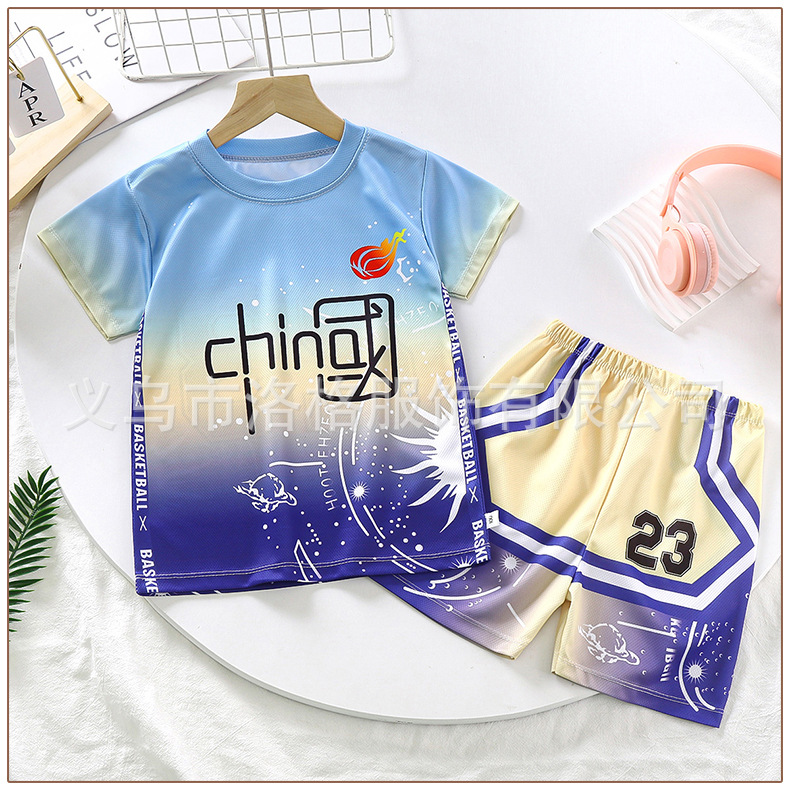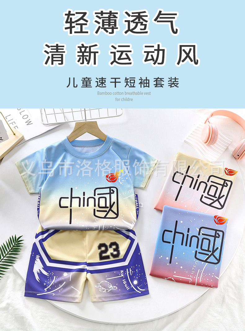 2023 새로운 중국 스타일 어린이 세트 소년 스포츠 세트 세트 여름 속건 투피스 트레이닝 저지스토어 가기