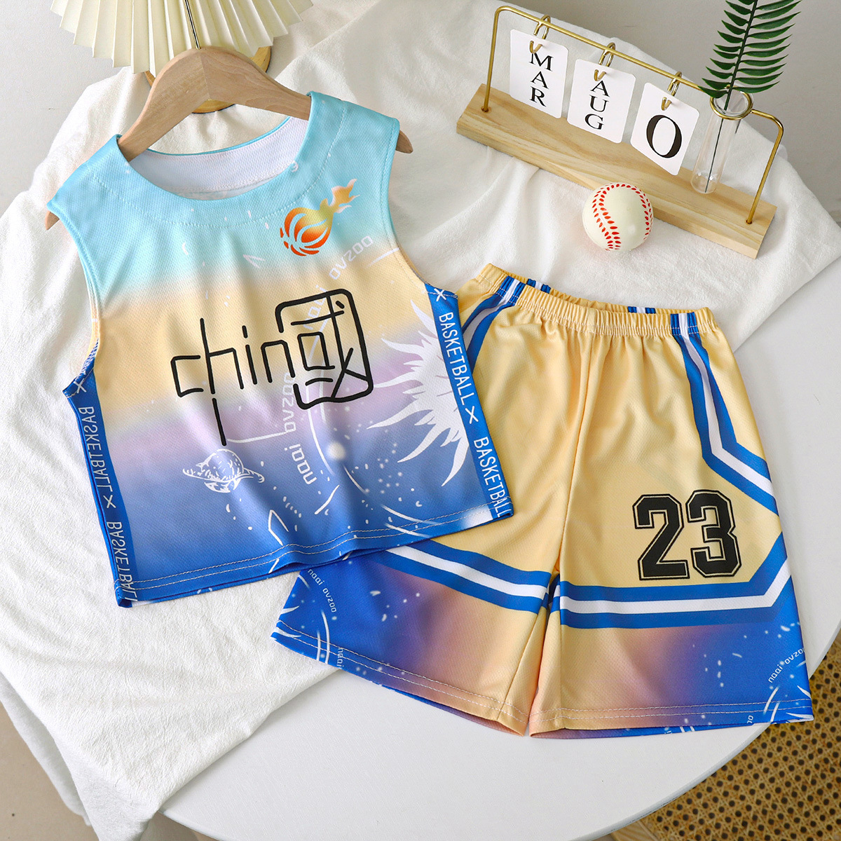 2023 새로운 중국 스타일 어린이 세트 소년 스포츠 세트 세트 여름 속건 투피스 트레이닝 저지