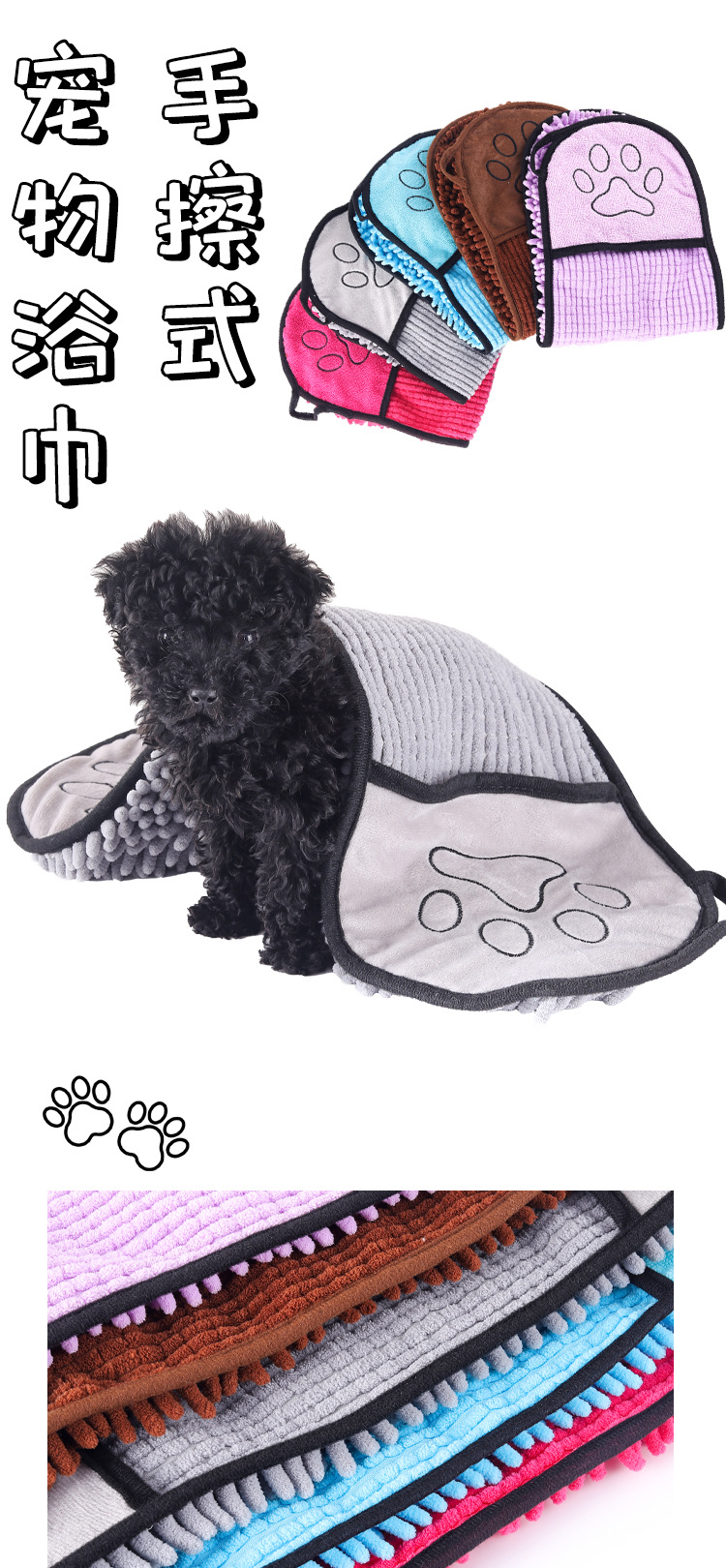 크로스 보더 애완 동물 제품 셔닐 개 고양이 목욕 타올 장갑 목욕 타올 흡수성 속건 목욕 타올스토어 가기