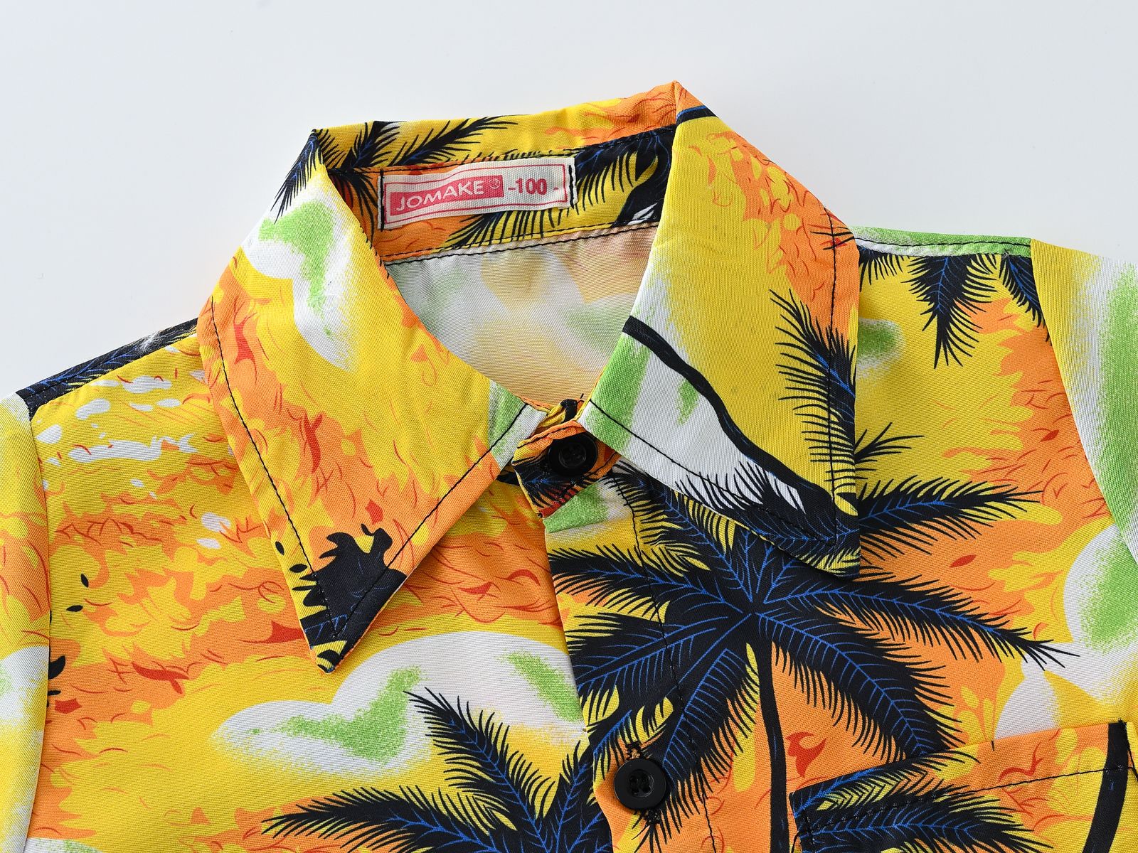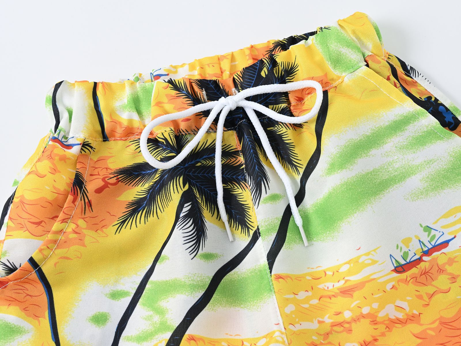 새로운 외국 무역 여름 어린이 세트 비치 코코넛 나무 바람 소년 인쇄 반팔 + 반바지 캐주얼 세트 도매